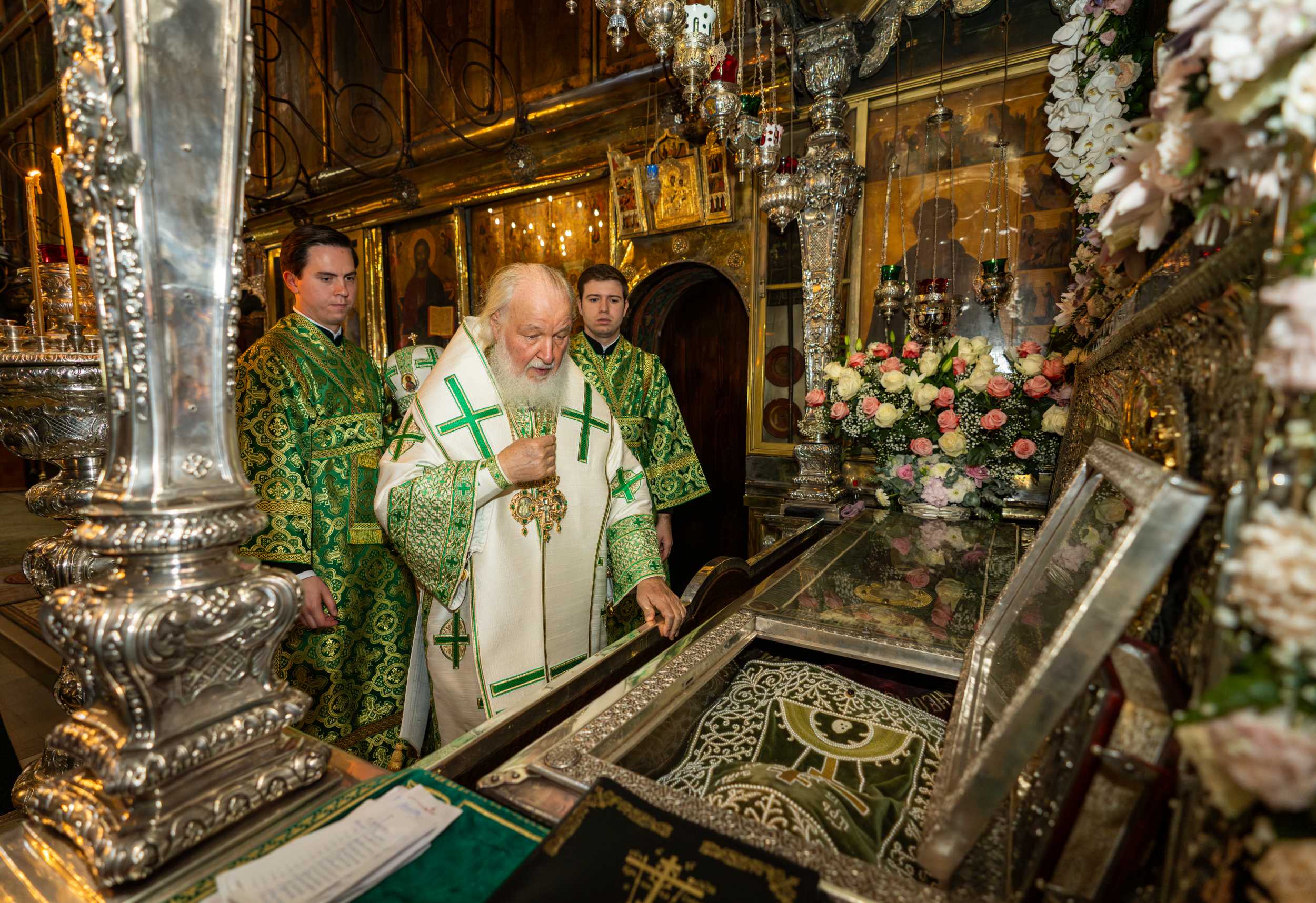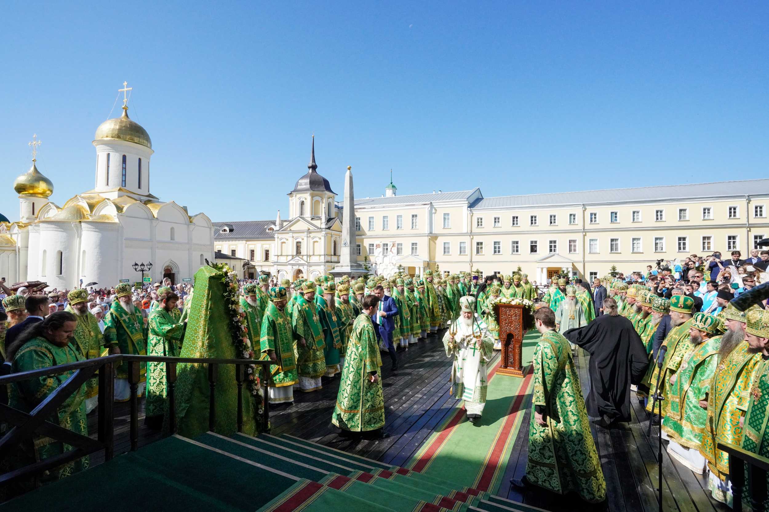 18 июля 2025 года, в день праздника обретения честных мощей преподобного Сергия, игумена Радонежского (1422), Святейший Патриарх Московский и всея Руси Кирилл совершил Божественную литургию на Соборной площади Свято-Троицкой Сергиевой лавры. Торжественное богослужение совершалось перед чтимой иконой преподобного Сергия Радонежского.