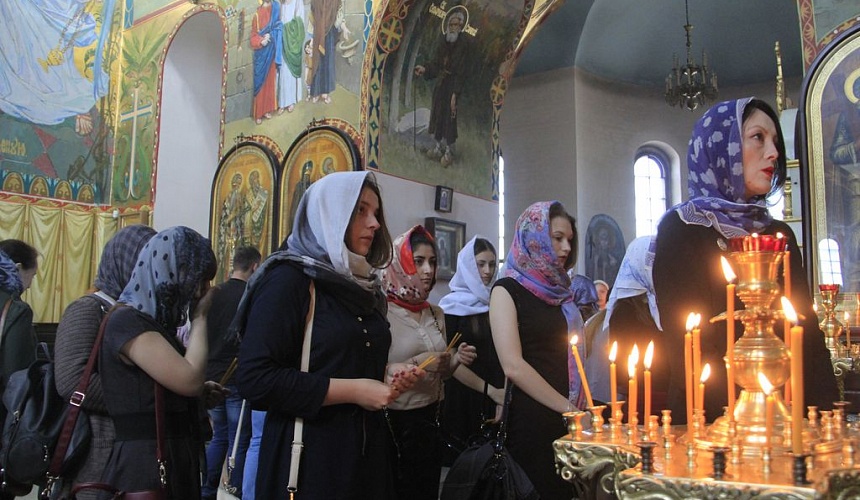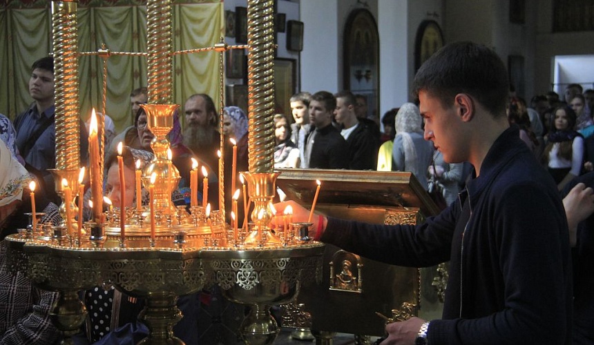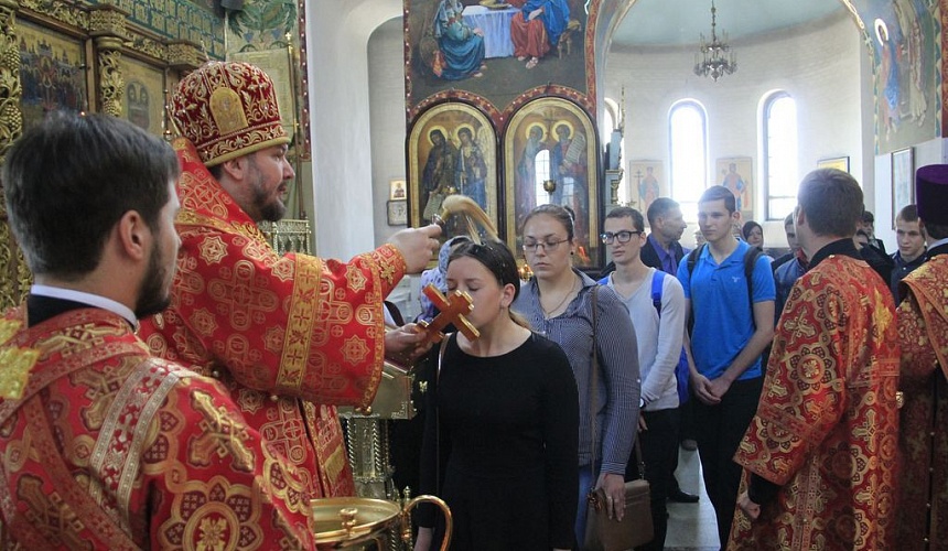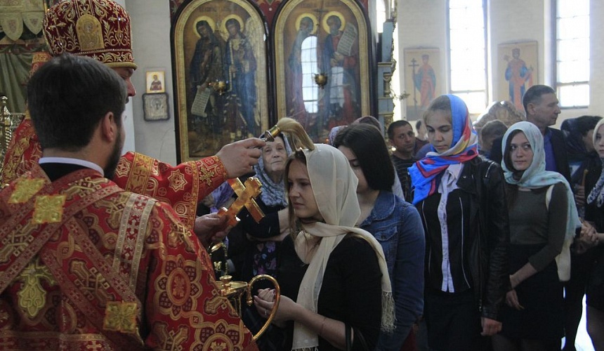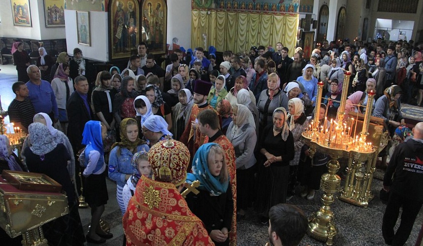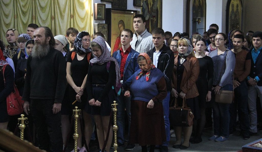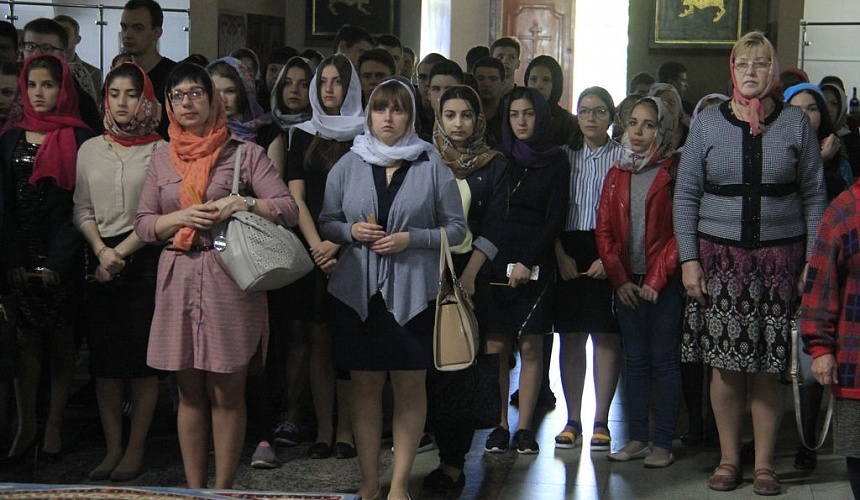 Выпускники школ города Шахты пришли на богослужение в кафедральный собор, чтоб взять благословение на сдачу Единого государственного экзамена.