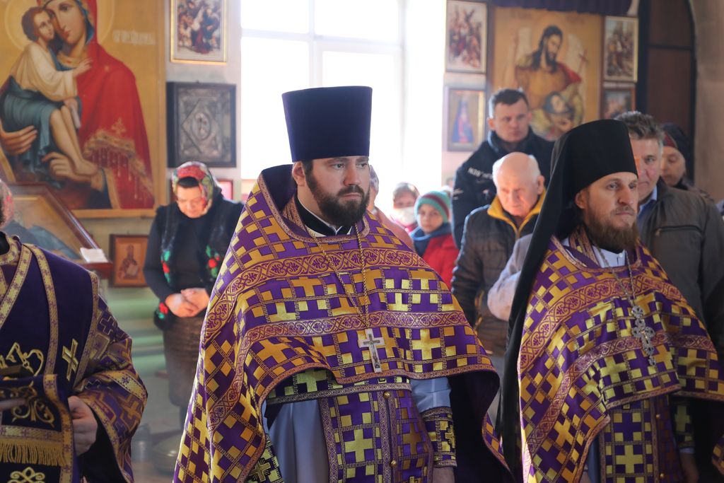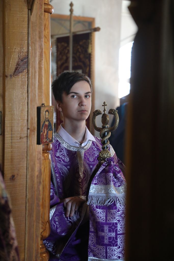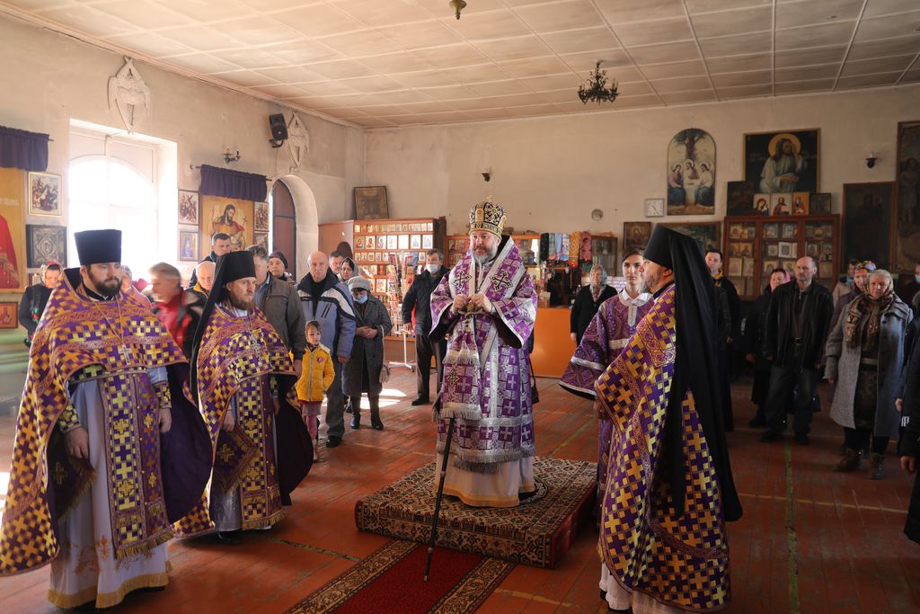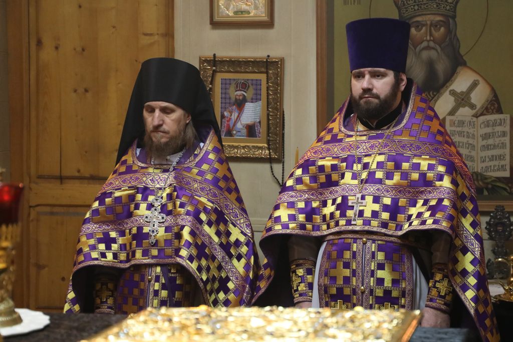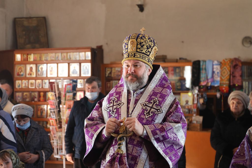 Его Преосвященству сослужили настоятель храма иеромонах Димитрий (Яроцкий), настоятель храма Покрова Пресвятой Богородицы сл. Никольская иерей Георгий Лукащук, клирик Калачевской епархии иеромонах Никита (Сергеев) и диакон Трофим Осяк.