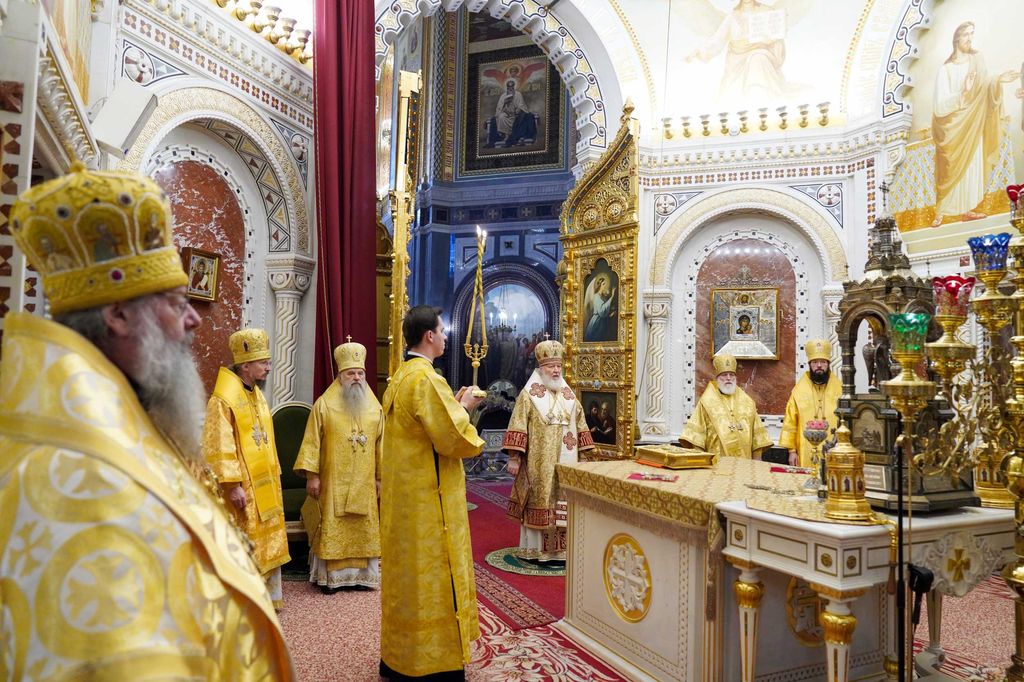 Его Святейшеству сослужили: постоянные члены Священного Синода Русской Православной Церкви — митрополит Санкт-Петербургский и Ладожский Варсонофий, Патриарший наместник Московской митрополии митрополит Крутицкий и Коломенский Павел, председатель Отдела внешних церковных связей Московского Патриархата митрополит Волоколамский Антоний, Патриарший экзарх всея Беларуси митрополит Минский и Заславский Вениамин; члены Священного Синода и Высшего Церковного Совета, сонм архиереев Русской Православной Церкви.