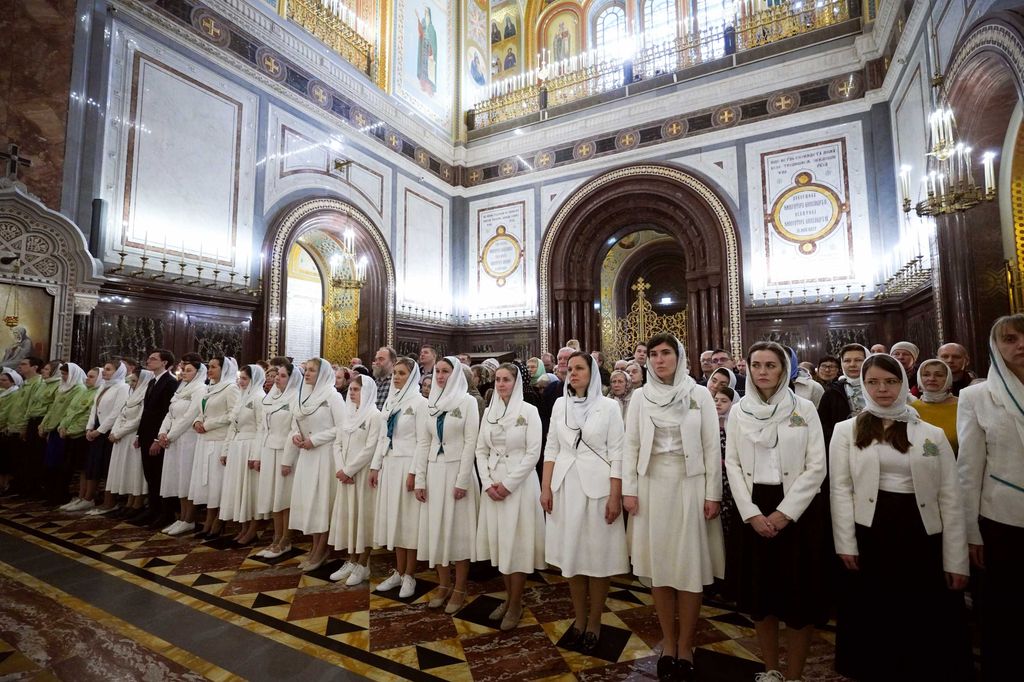Богослужебные песнопения исполнили Патриарший хор Храма Христа Спасителя под управлением И.Б. Толкачева и братский хор Свято-Троицкой Сергиевой лавры под управлением иеромонаха Нестора (Волкова).