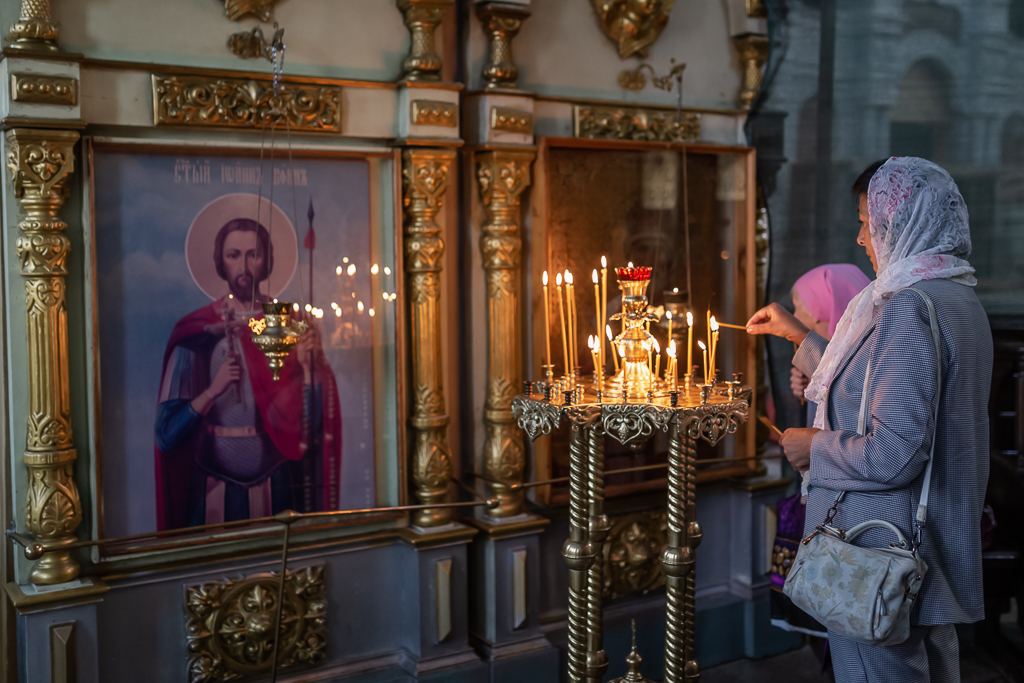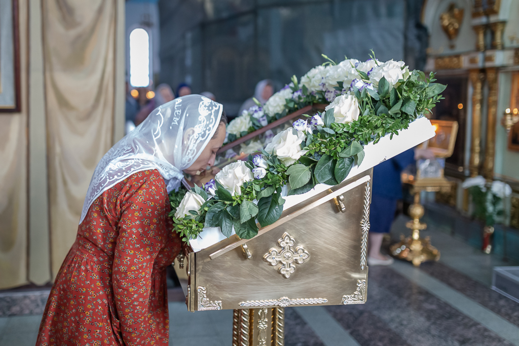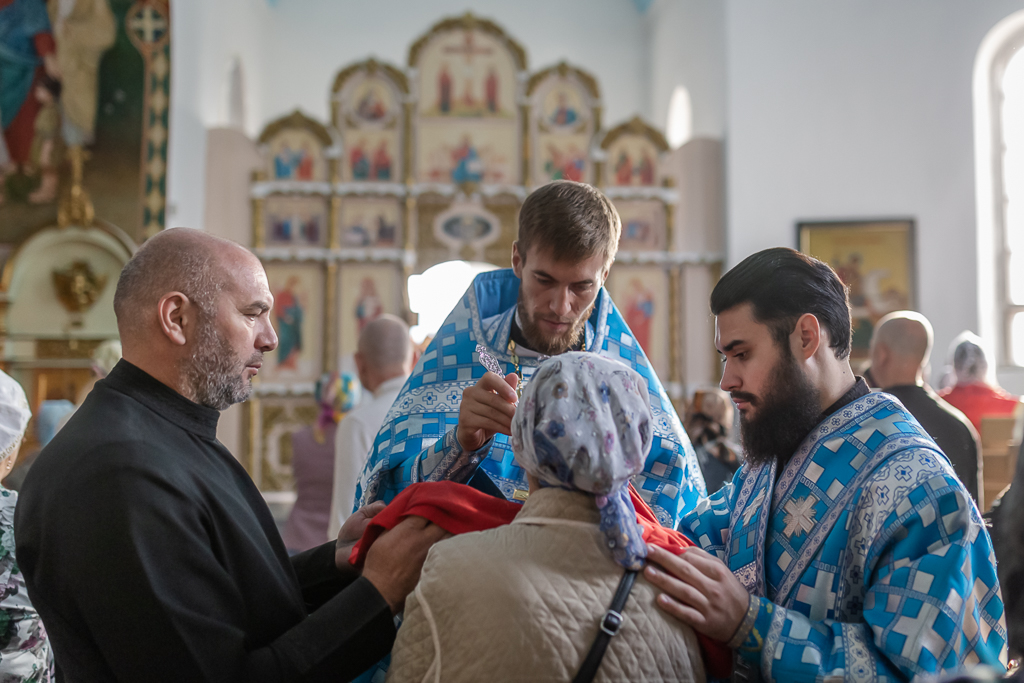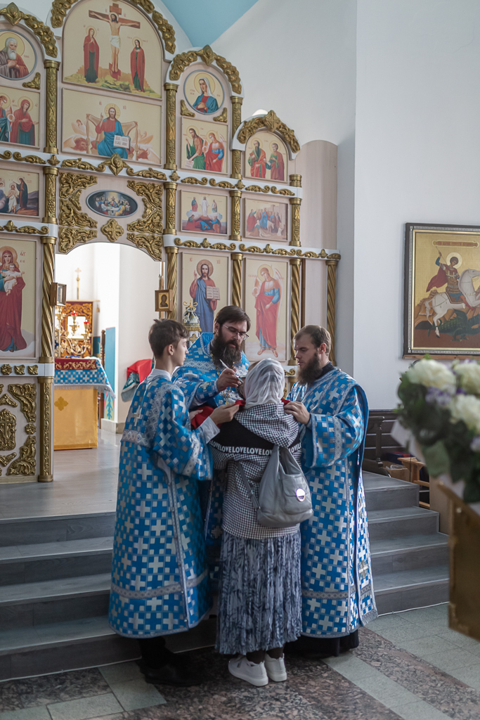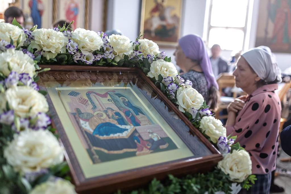 По завершении богослужения духовенство совершило славление перед иконой праздника.