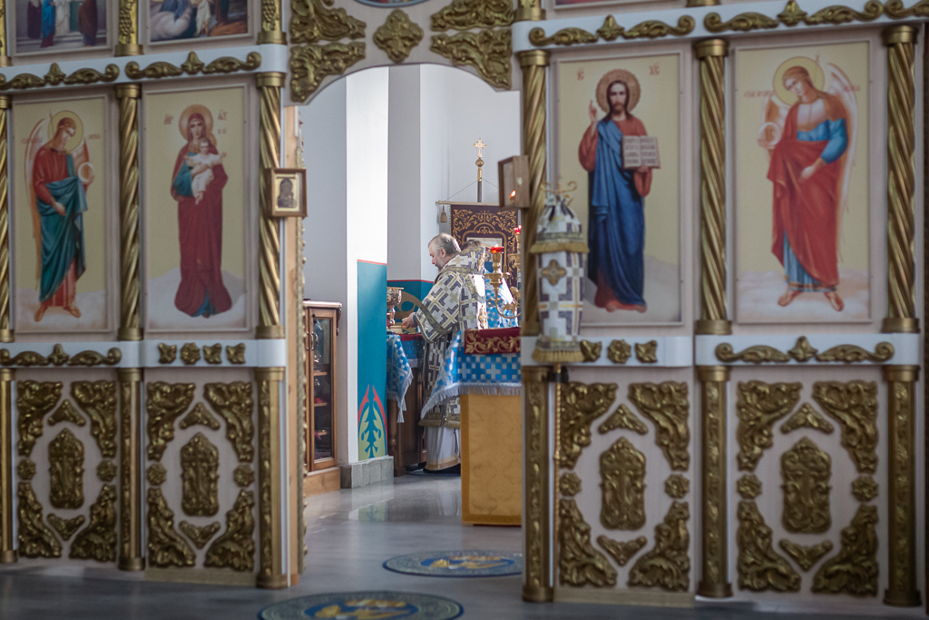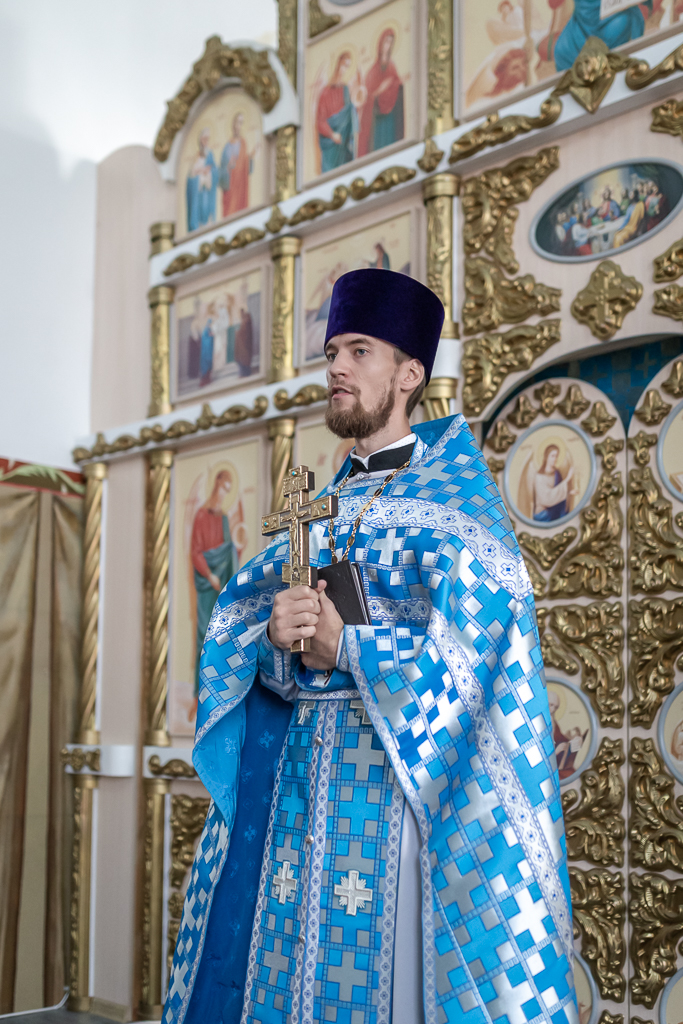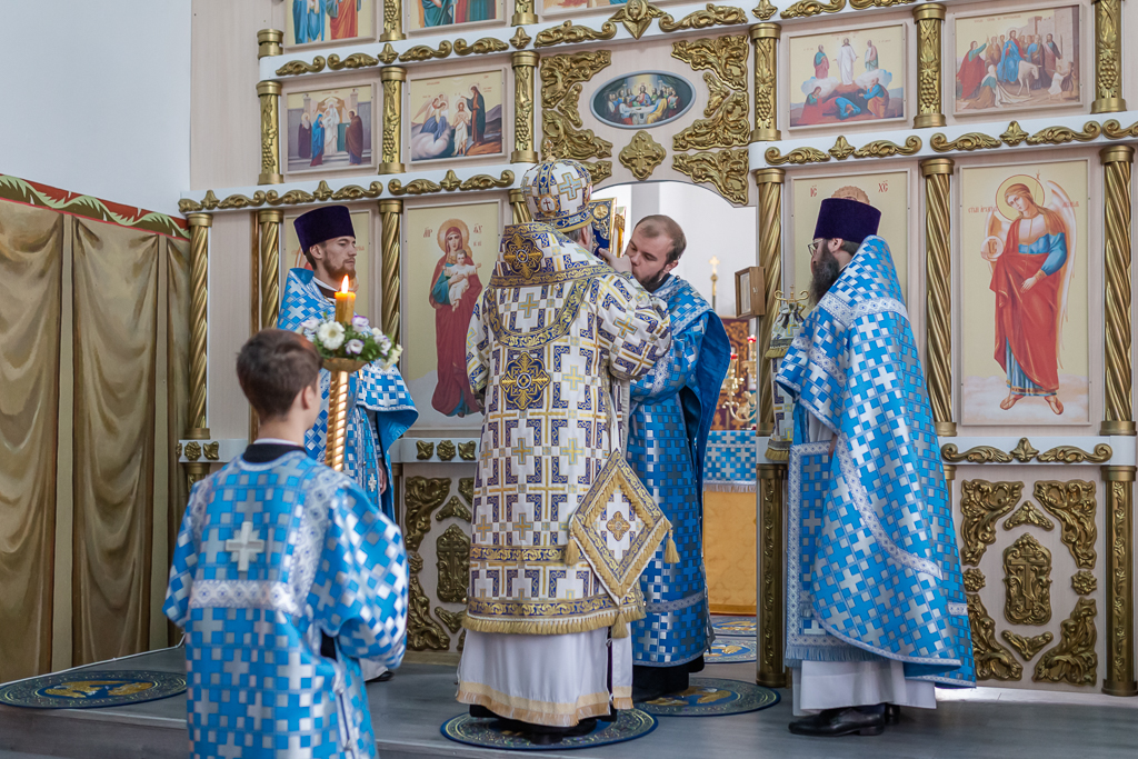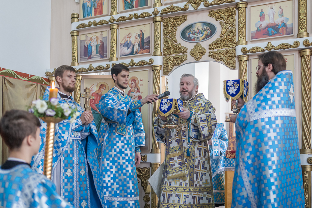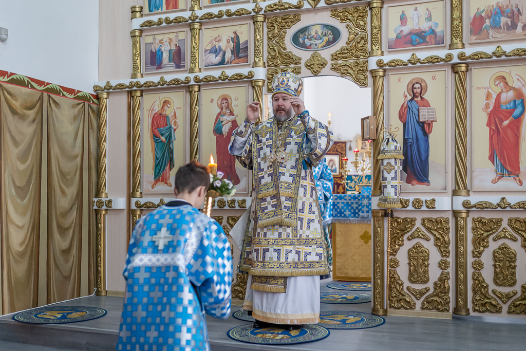 Его Преосвященству сослужили настоятель кафедрального собора иерей Александр Теличкин, иерей Даниил Зырянов и диакон Никита Осипов и диакон Вячеслав Иващенко.