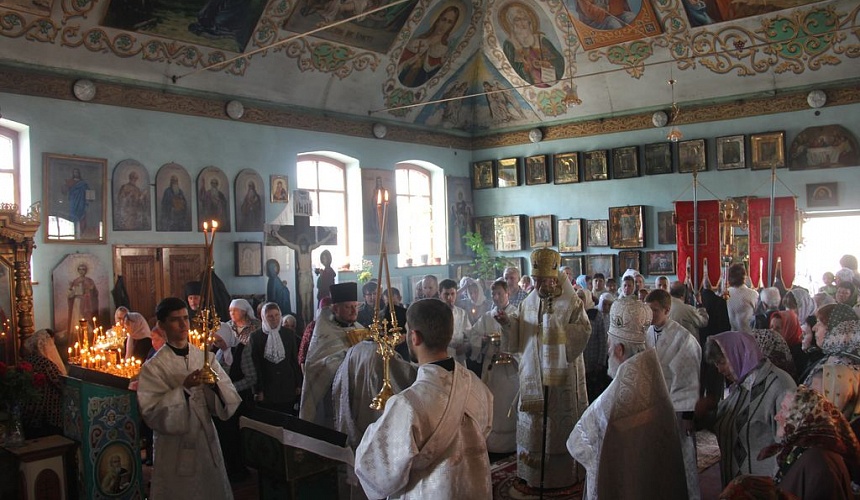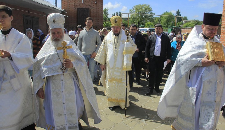 После Литургии прихожане и духовенство во главе с архиереем прошли крестным ходом вокруг храма.