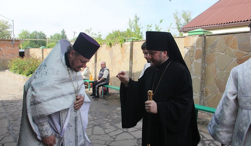 Архипастырю сослужили благочинный приходов Александровск-Грушевского округа протоиерей Владимир Иванов; духовник епархии, настоятель Вознесенского храма протоиерей Николай Уваров; клирик Покровского кафедрального собора иеродиакон Флавиан (Васильев).
