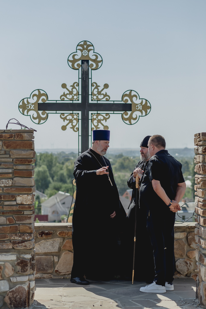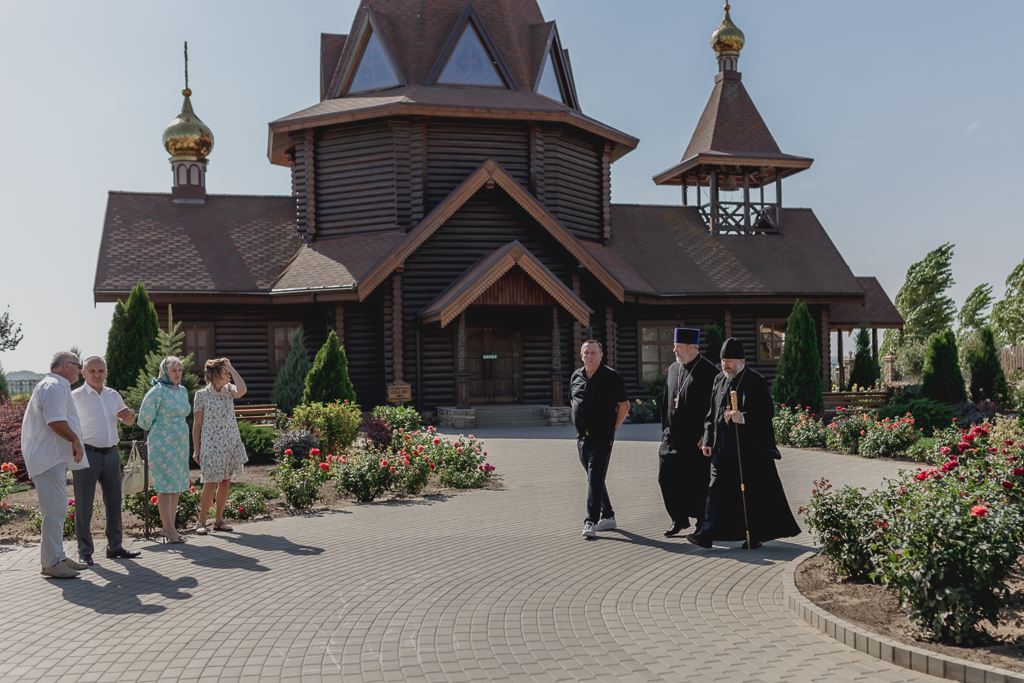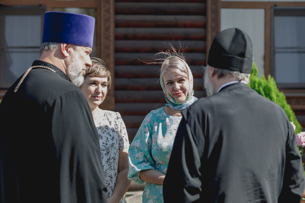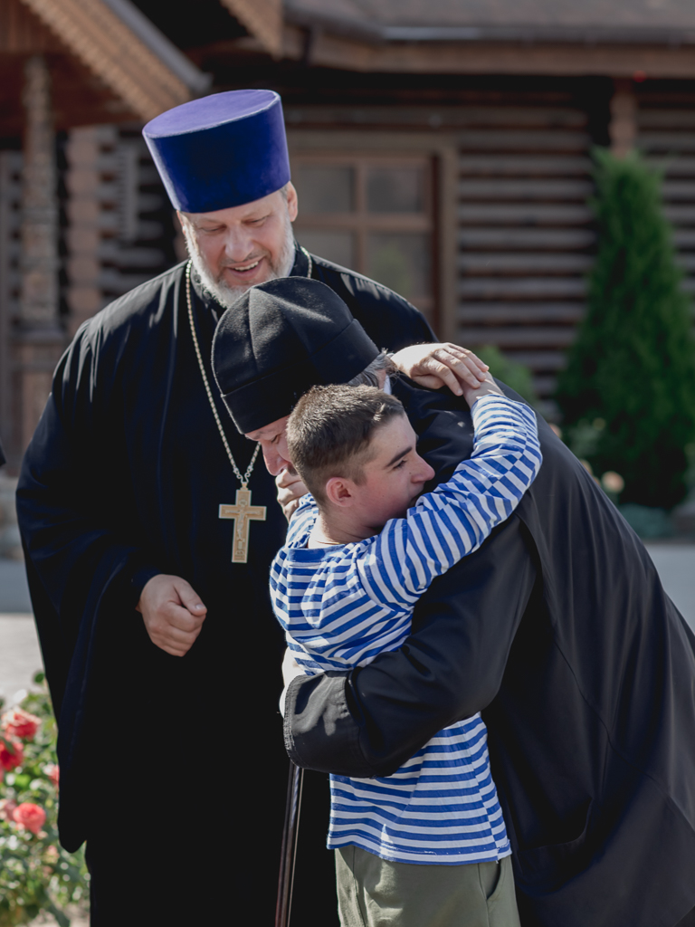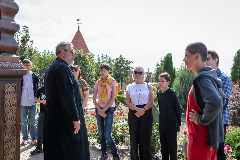 На подворье храма епископа Симона встречали председатель епархиального отдела по церковной благотворительности и социальному служению иерей Владислав Касьянов, создатель парка «Лога» и ктитор храма Сергей Александрович Кушнаренко, директор Центра реабилитации и абилитации «Добродея» Марина Владимировна Важенина, заместитель главы Администрации Каменского района Вадим Васильевич Болдырев, представитель Центра социальной защиты населения города Каменск-Шахтинский Ксения Александровна Ковалёва, настоятель подворья Свято-Троицкой Сергиевой Лавры в городе Пересвет протоиерей Константин Харитонов, клирик храма Покрова Богородицы города Каменск-Шахтинский иерей Владимир Щербаков, представители терапевтической команды Центра и гости из ДНР.