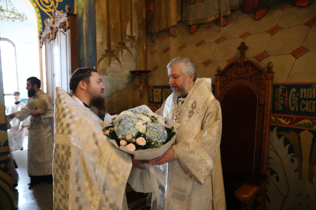 Архиерей отечески напутствовал рукоположенного иерея Андрея и благословил на прохождение богослужебной практики в кафедральном соборе.