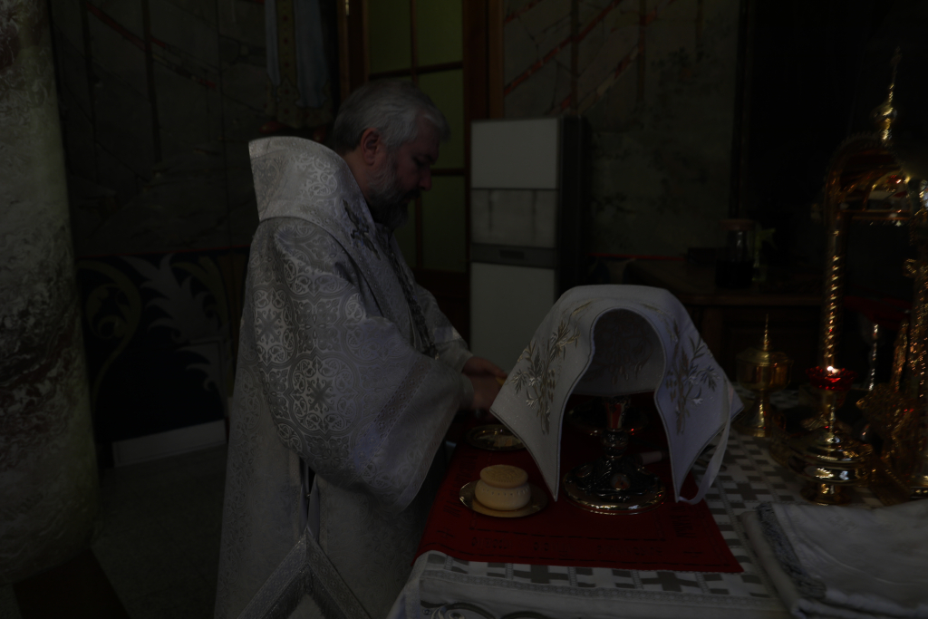 Священник Андрей преподал верующим первое пастырское благословение.