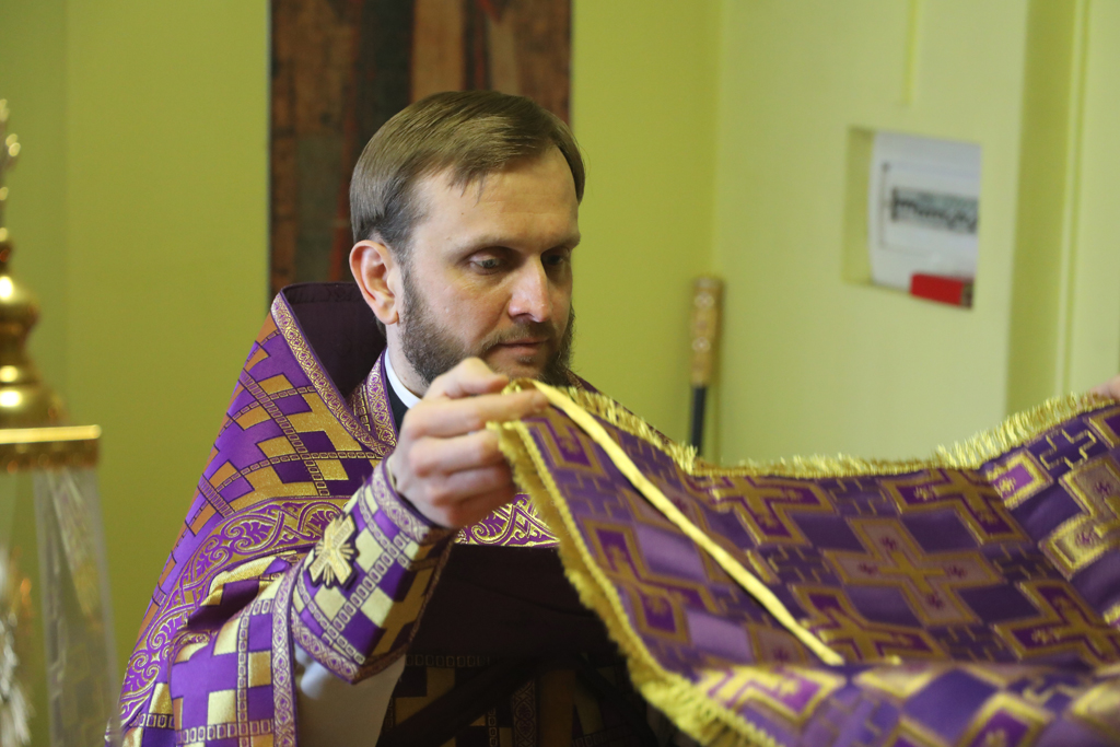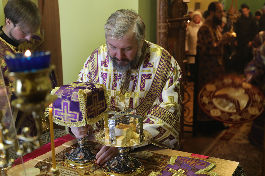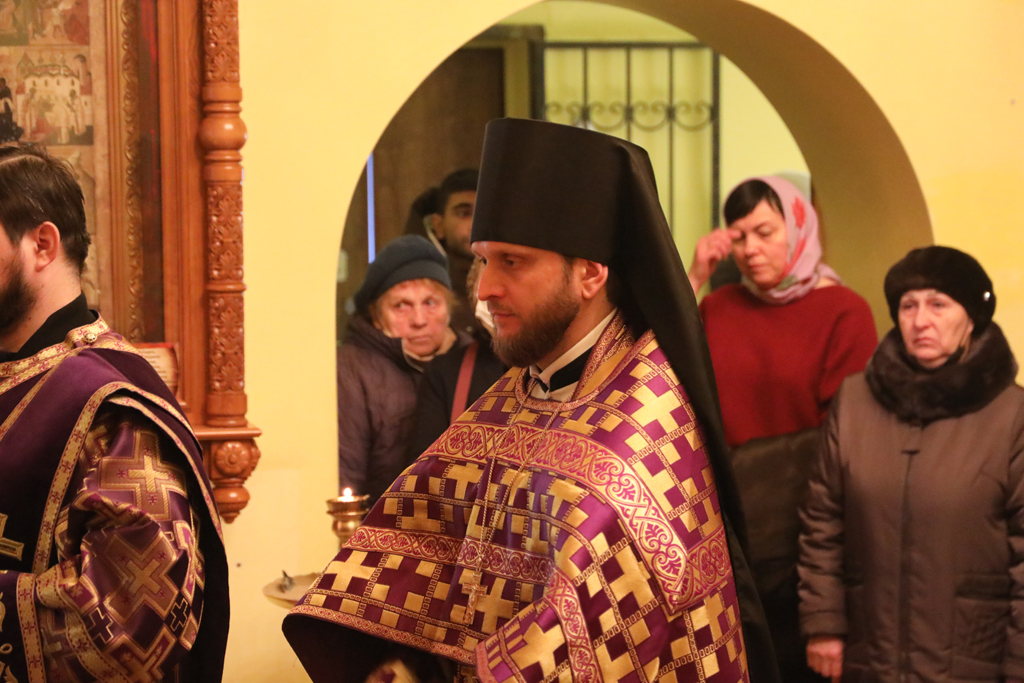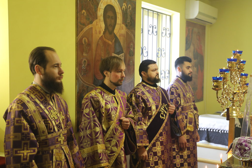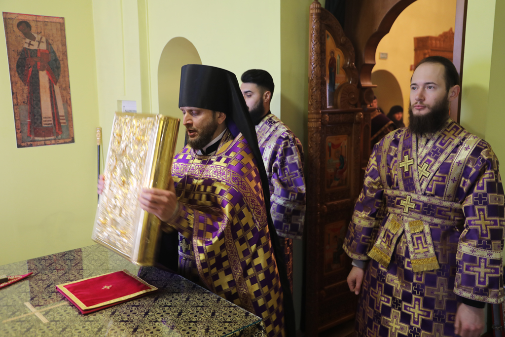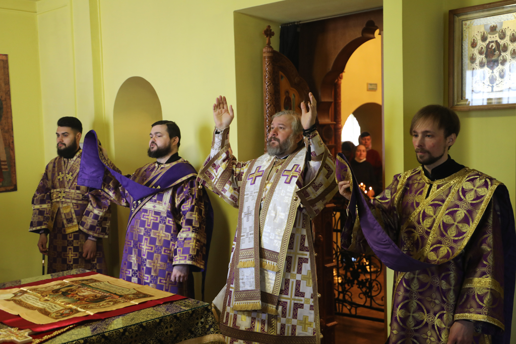 Его Преосвященству сослужили настоятель храма иеромонах Герман (Руденко), диакон Трофим Осяк и иеродиакон Флавиан (Васильев).