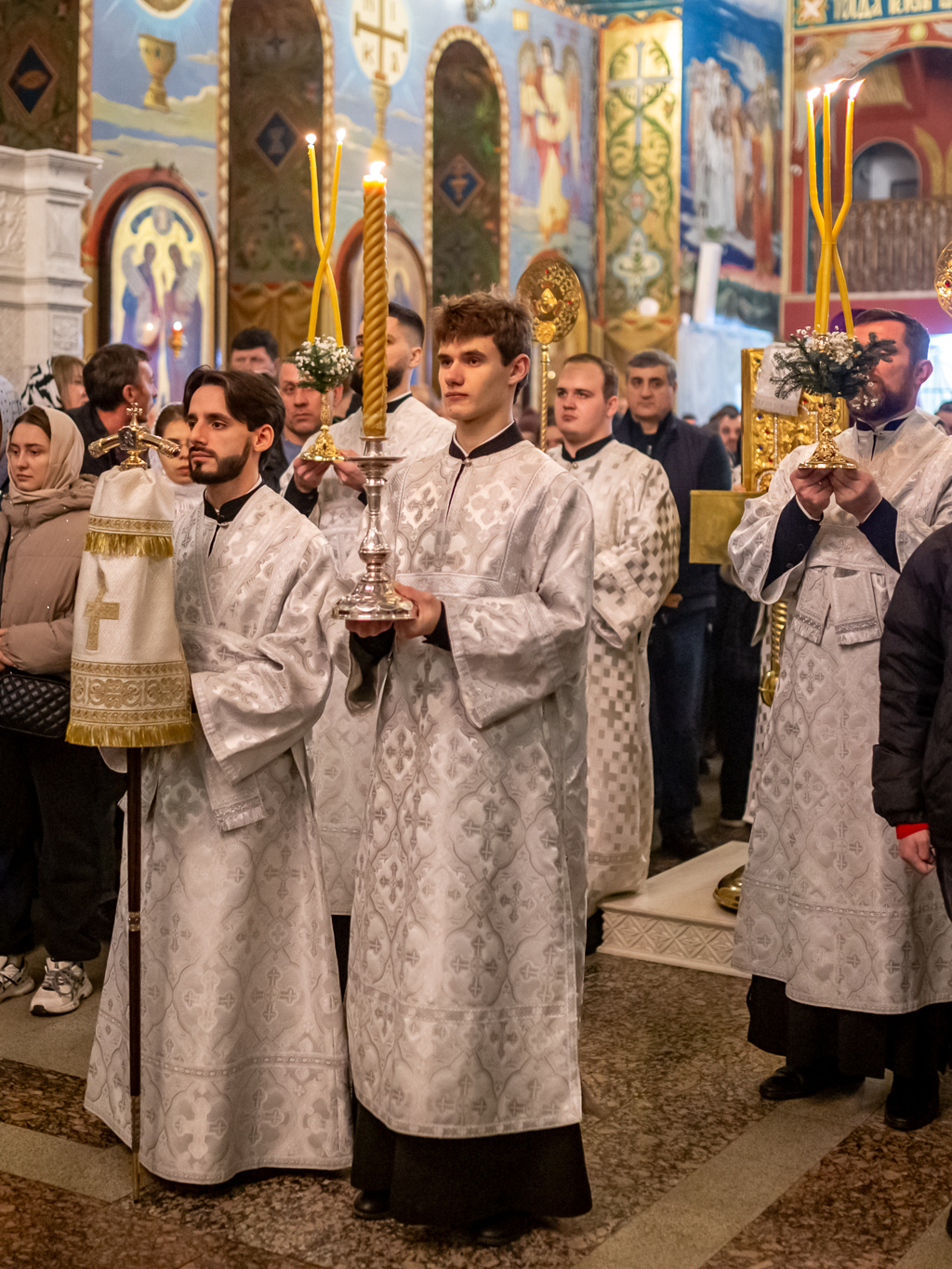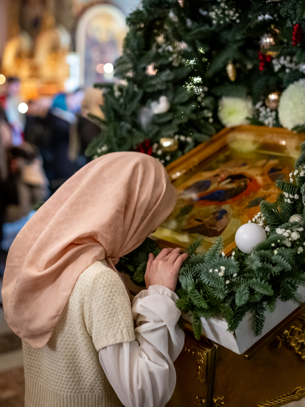 За Литургией было прочитано Евангелие от Матфея, возвестившее собравшимся вечную и радостную весть о рождении в мир Спасителя. Сотни верующих в эту святую ночь заполнили храм, чтобы после дней духовного труда и воздержания, встретить долгожданный праздник Боговоплощения.