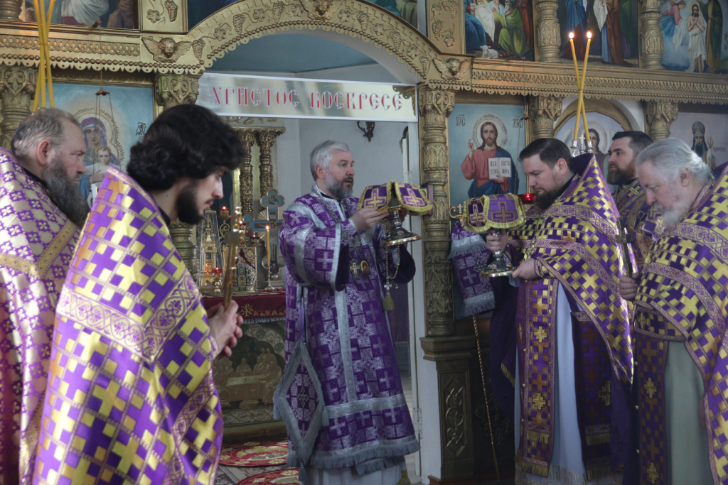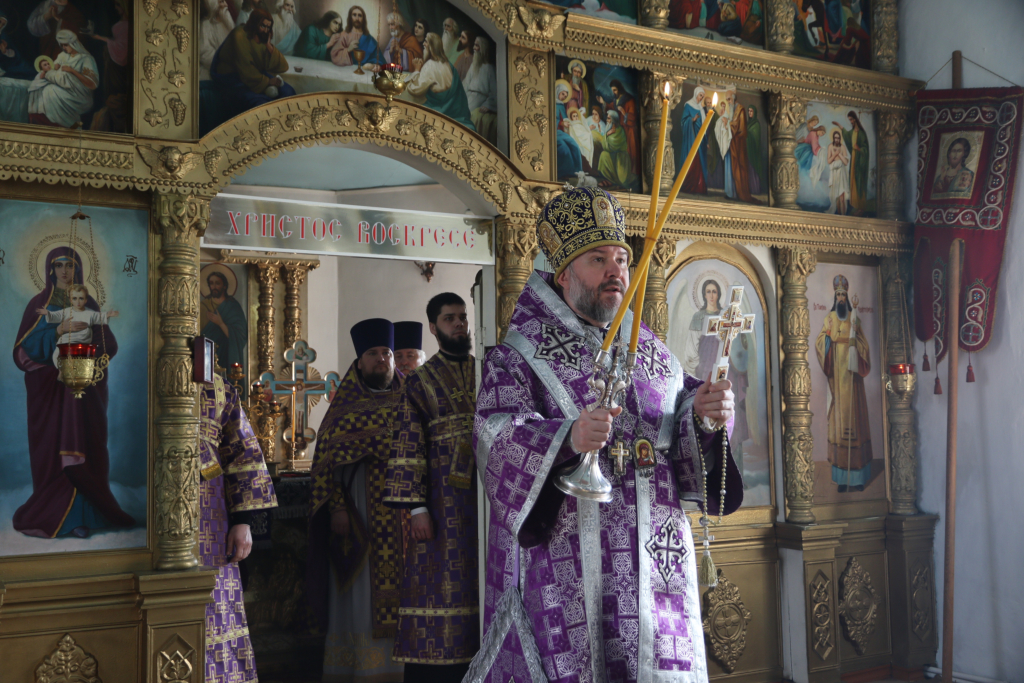 В поминальную субботу Великого поста Преосвященнейший епископ Симон совершил Божественную литургию и панихиду в храме святителя Тихона Задонского поселка Тарасовский