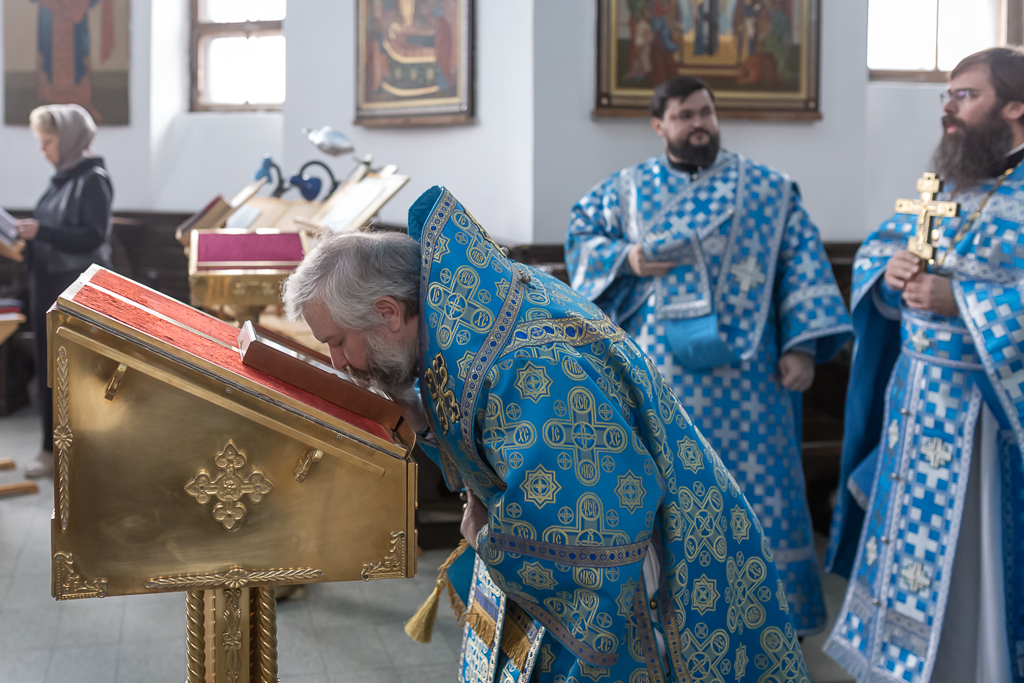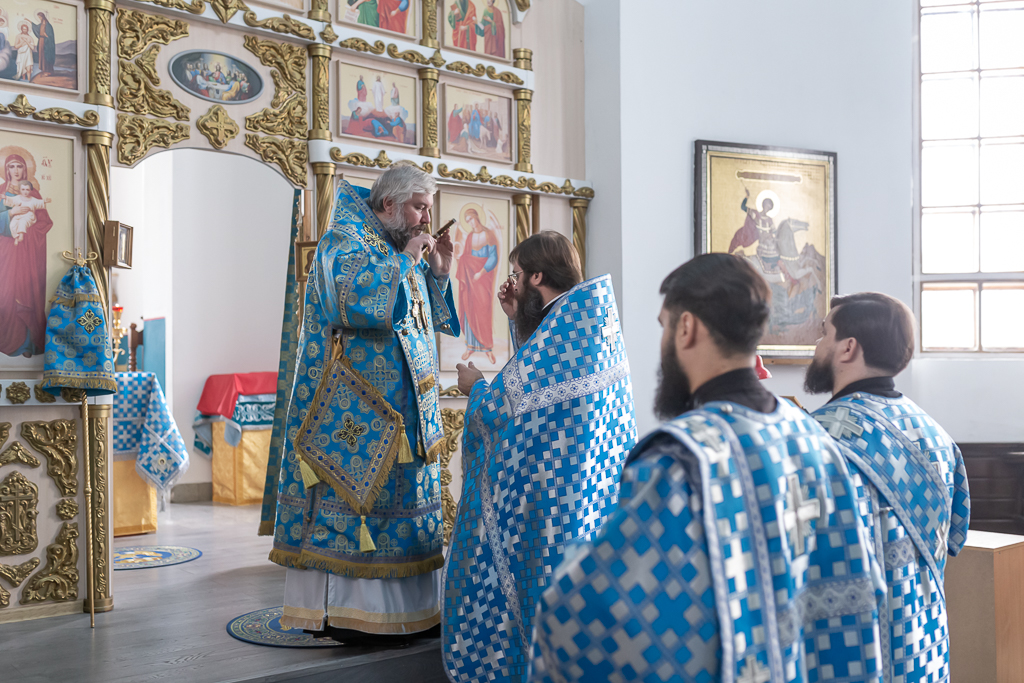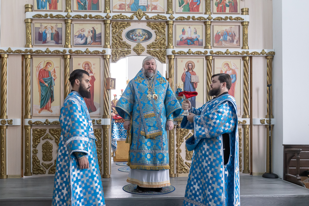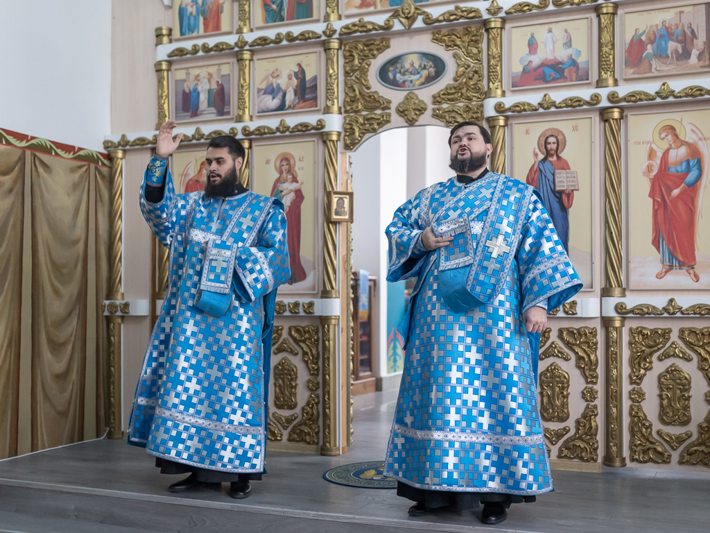 Вместе с архипастырем молились настоятель собора иерей Александр Теличкин, диакон Трофим Осяк, диакон Вячеслав Иващенко и прихожане.
