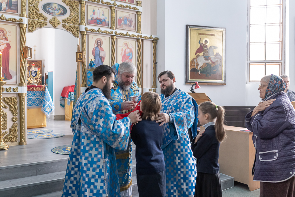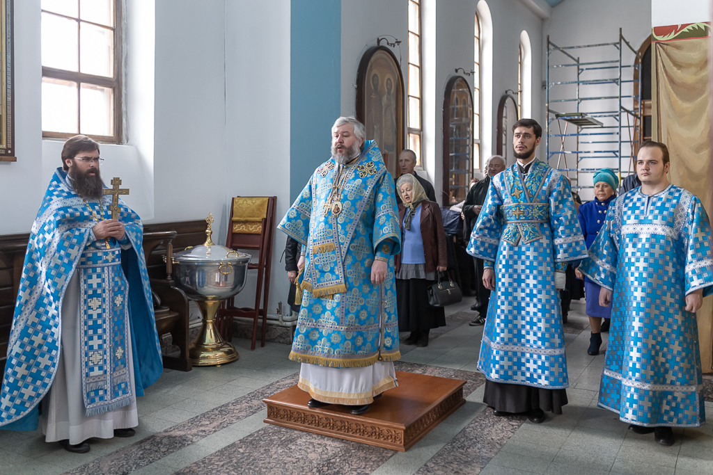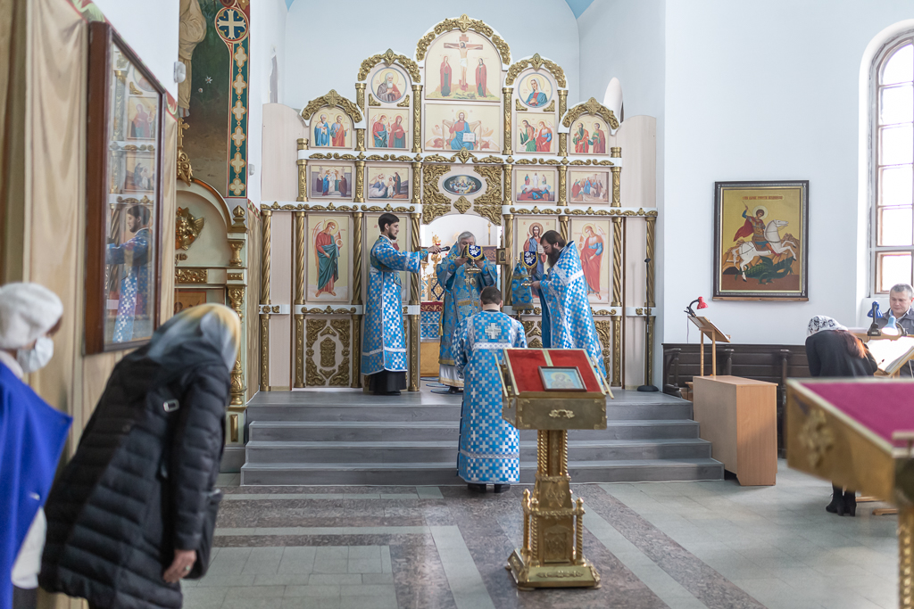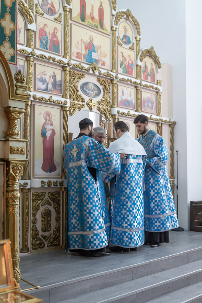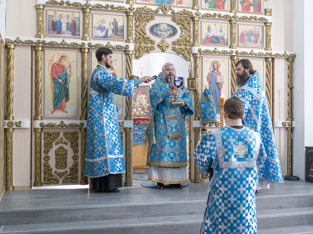 Вместе с архипастырем молились настоятель собора иерей Александр Теличкин, диакон Трофим Осяк, диакон Вячеслав Иващенко и прихожане.