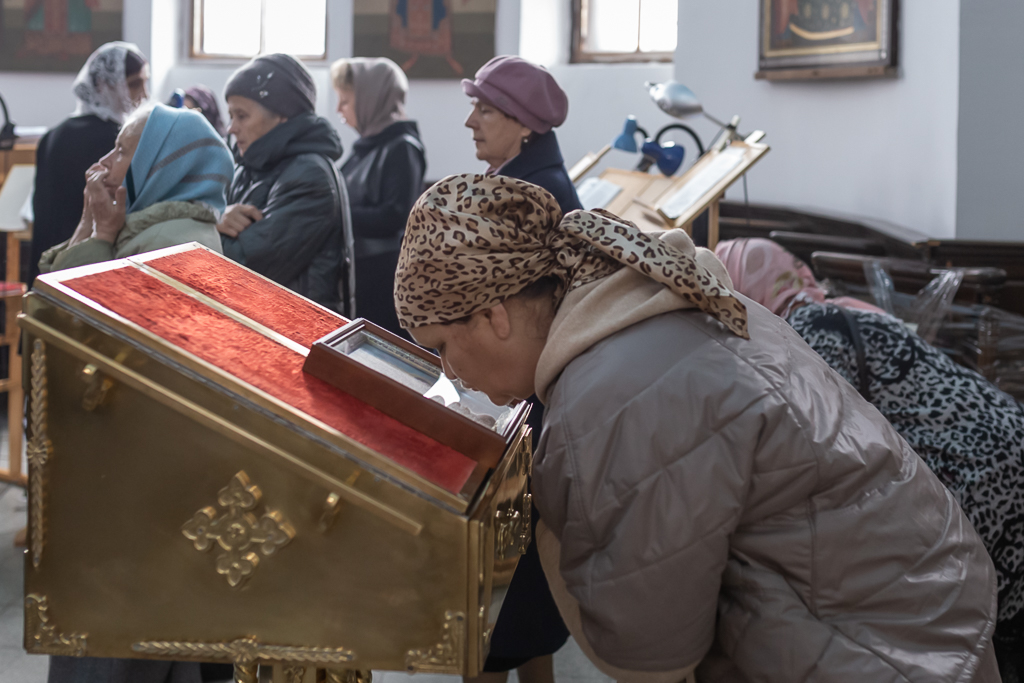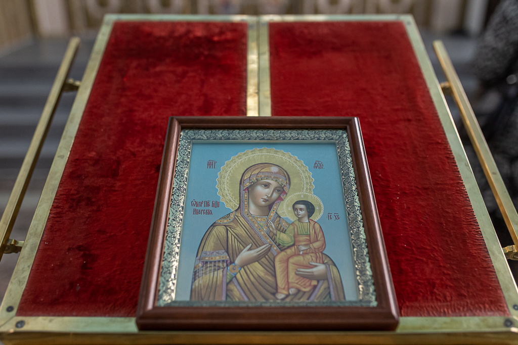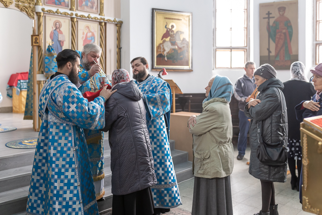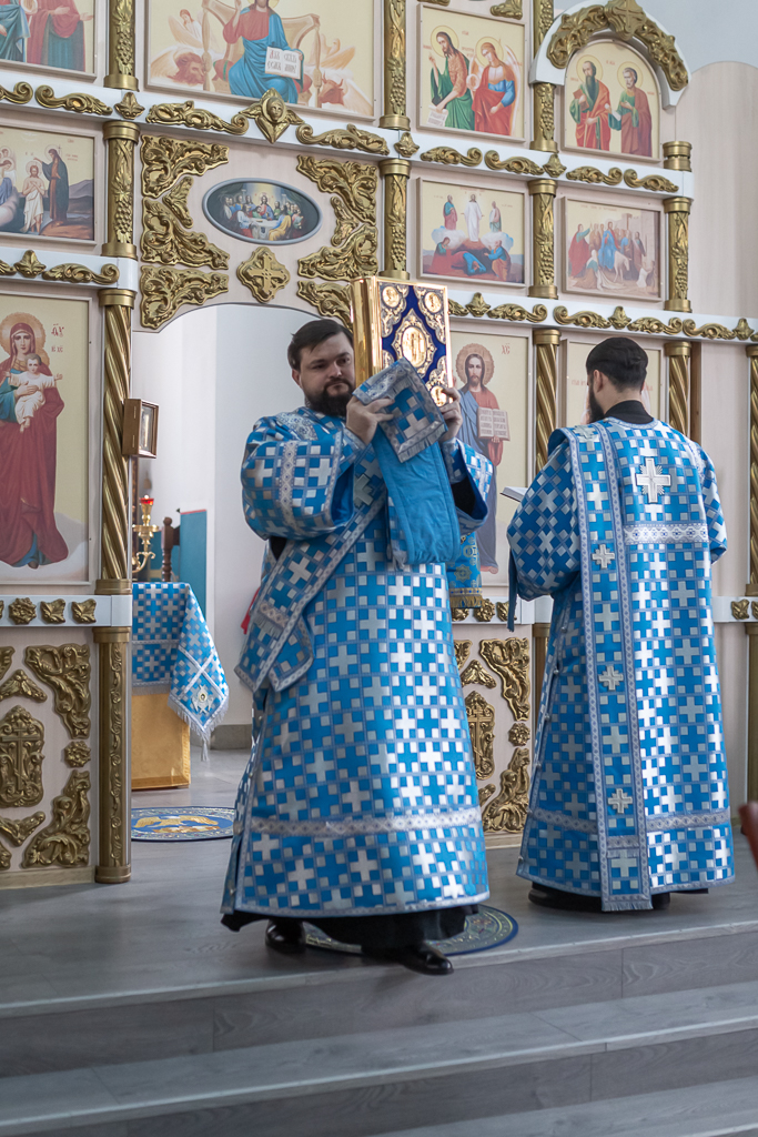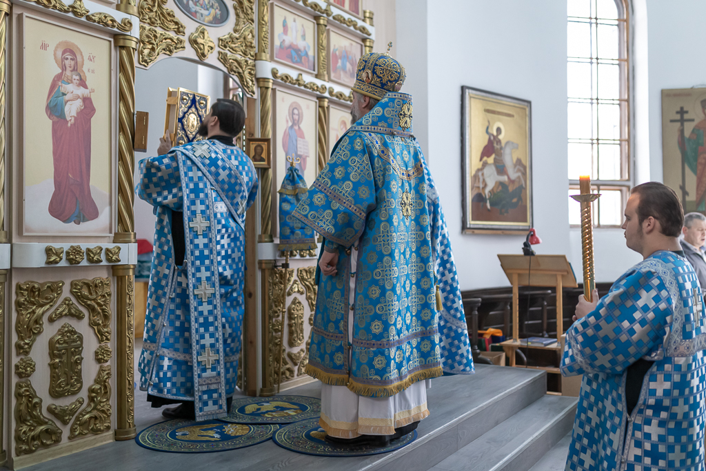 По завершении богослужения духовенство совершило славление Пресвятой Богородице перед Ее чтимой иконой.