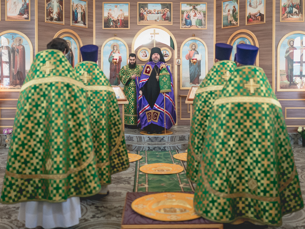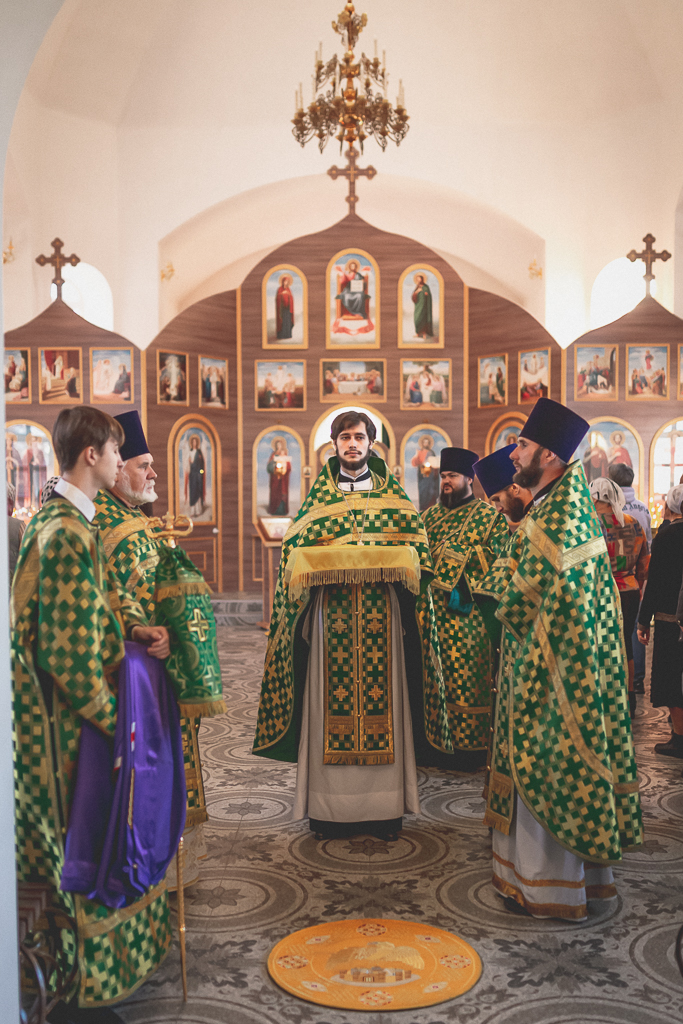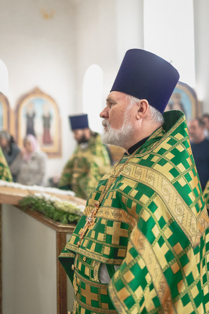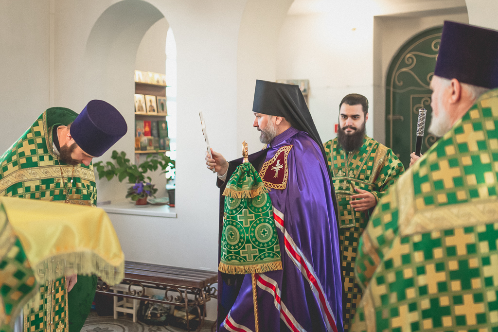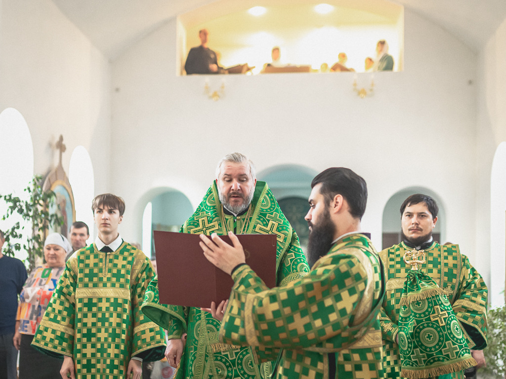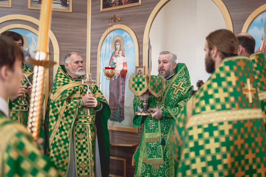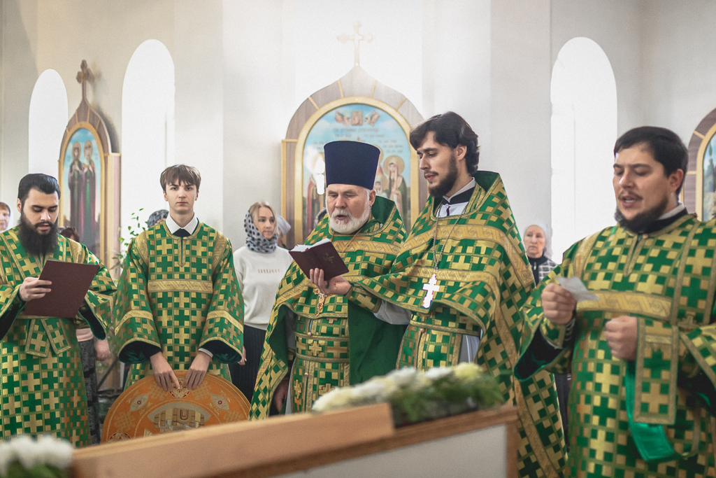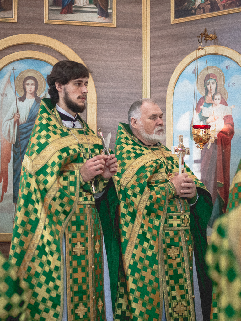 За Божественной литургией архипастырю сослужили настоятель храма иерей Георгий Болоцков, настоятель Киреевского Георгиевского архиерейского подворья протоиерей Георгий Болоцков, настоятель храма праведного Иосифа Обручника г. Шахты иерей Сергий Болоцков, иерей Михаил Дубянский, диакон Трофим Осяк и диакон Антоний Гулиев.
