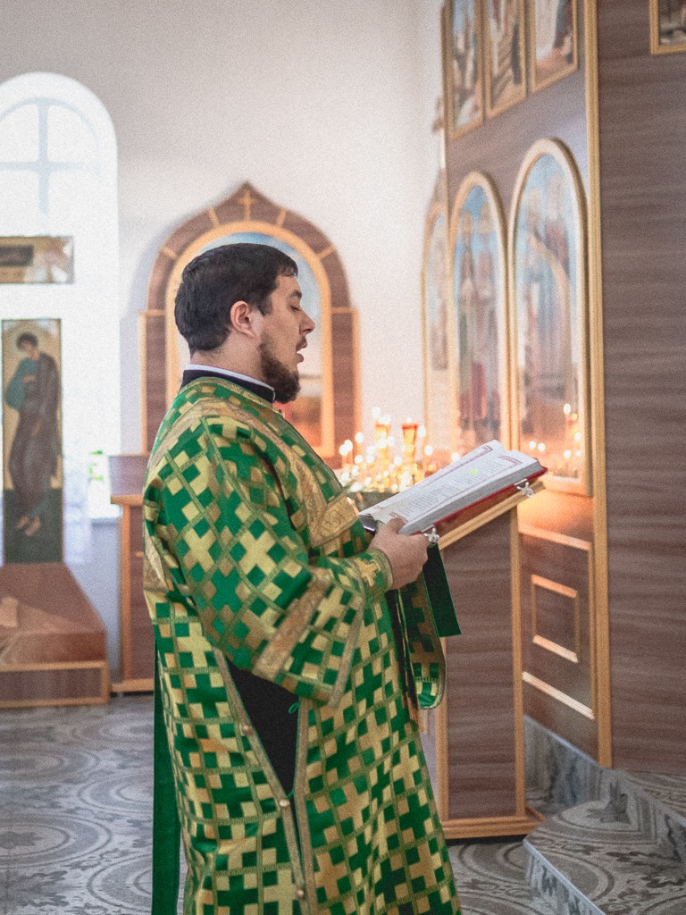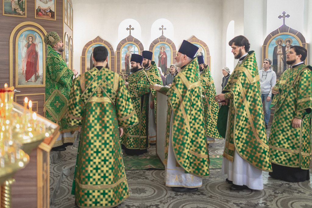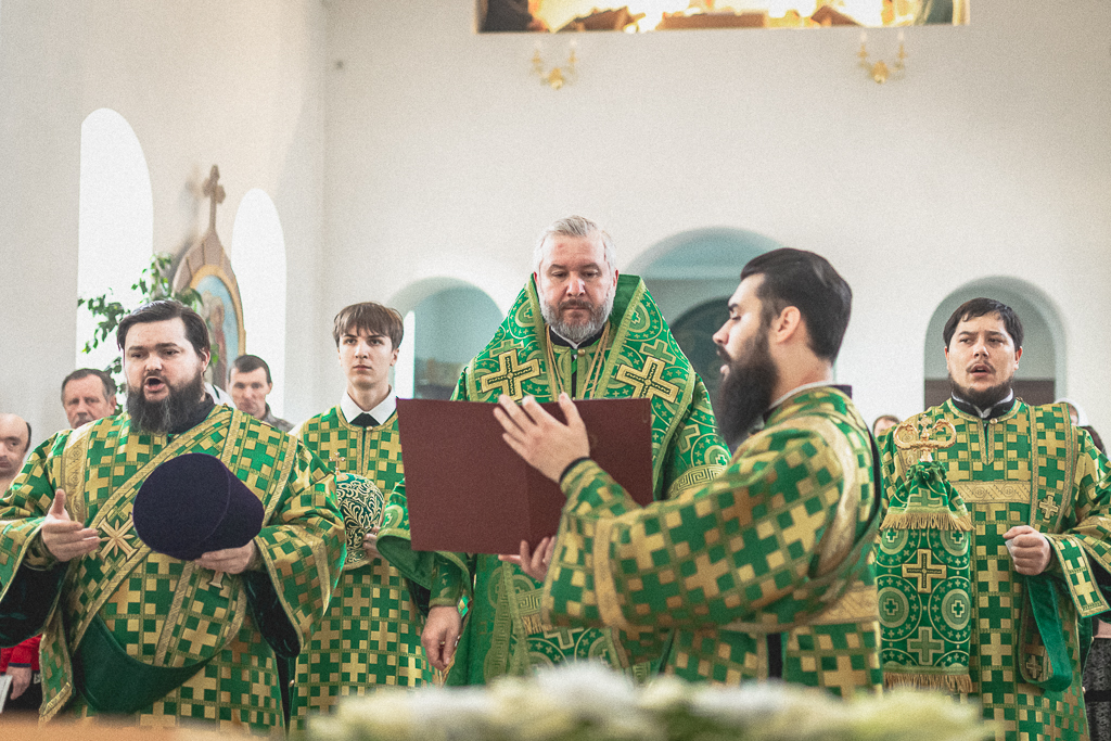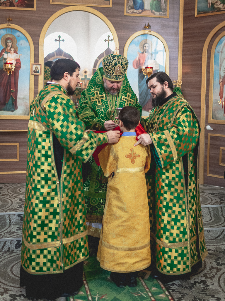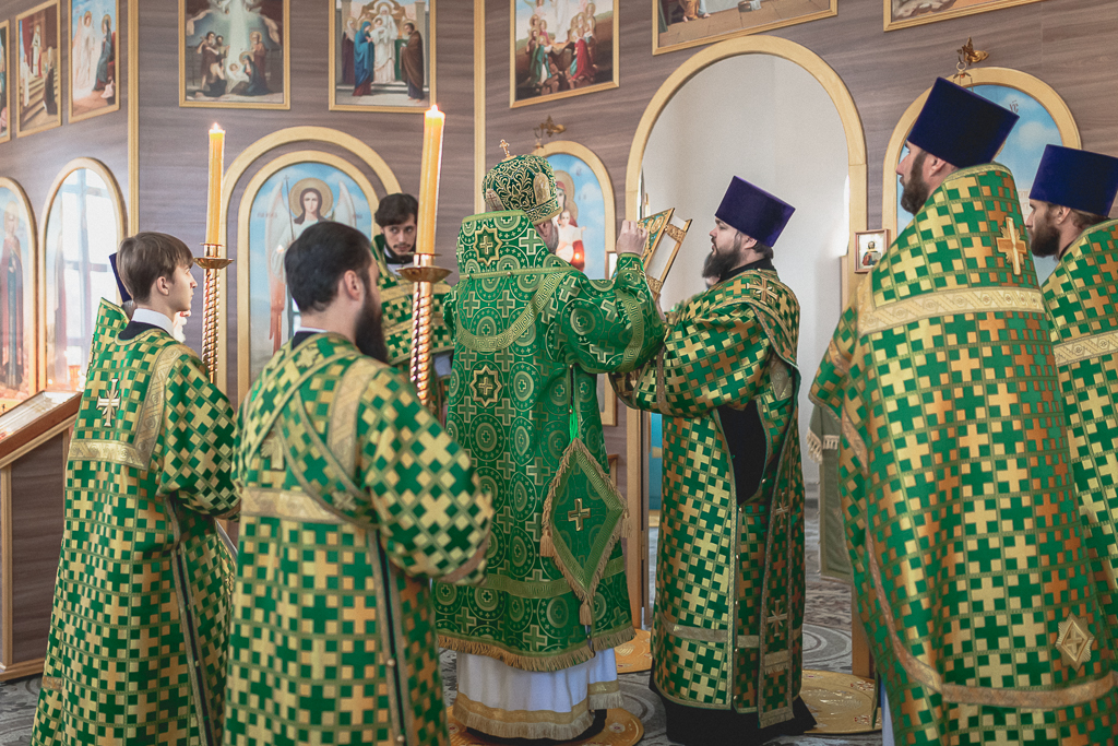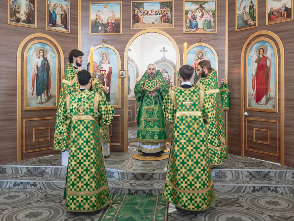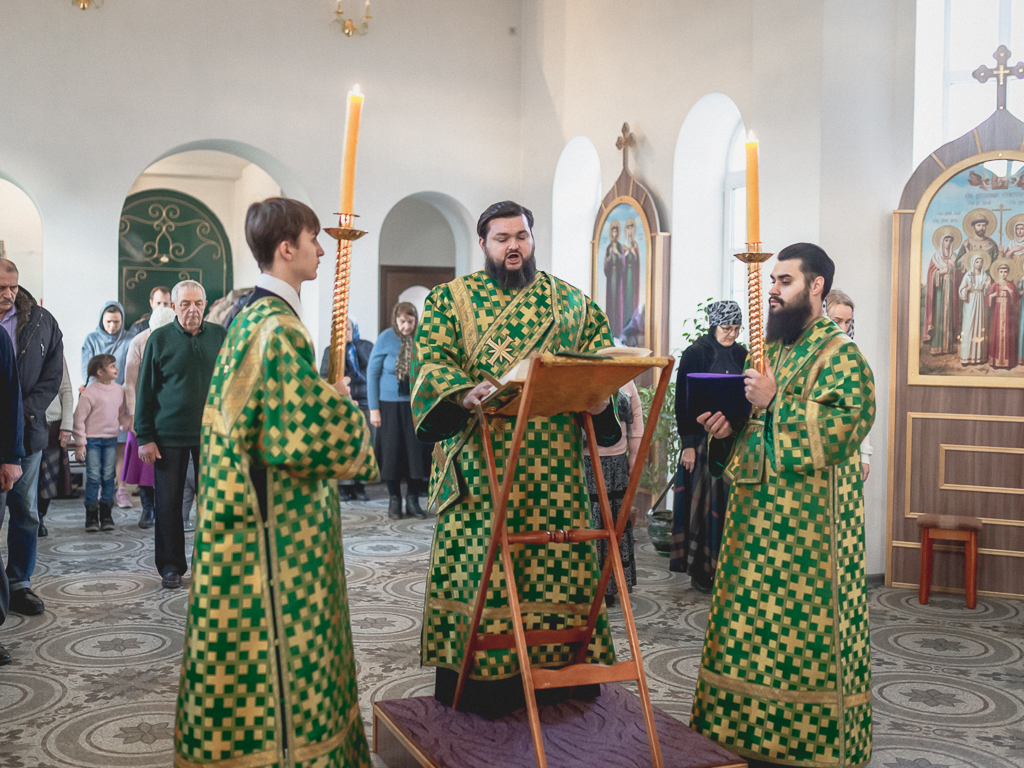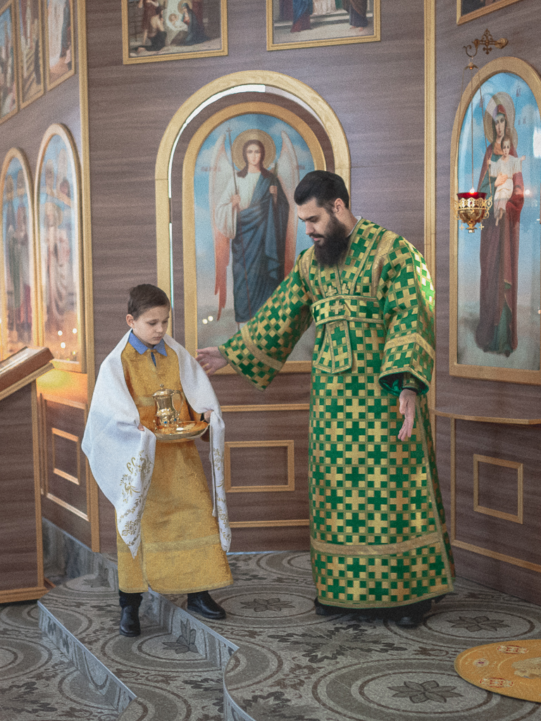 За Божественной литургией архипастырю сослужили настоятель храма иерей Георгий Болоцков, настоятель Киреевского Георгиевского архиерейского подворья протоиерей Георгий Болоцков, настоятель храма праведного Иосифа Обручника г. Шахты иерей Сергий Болоцков, иерей Михаил Дубянский, диакон Трофим Осяк и диакон Антоний Гулиев.
