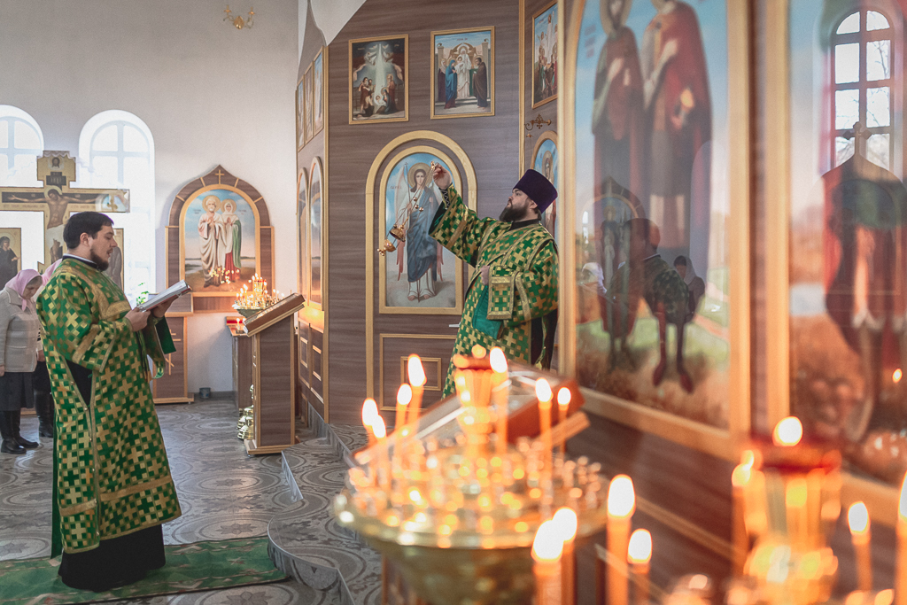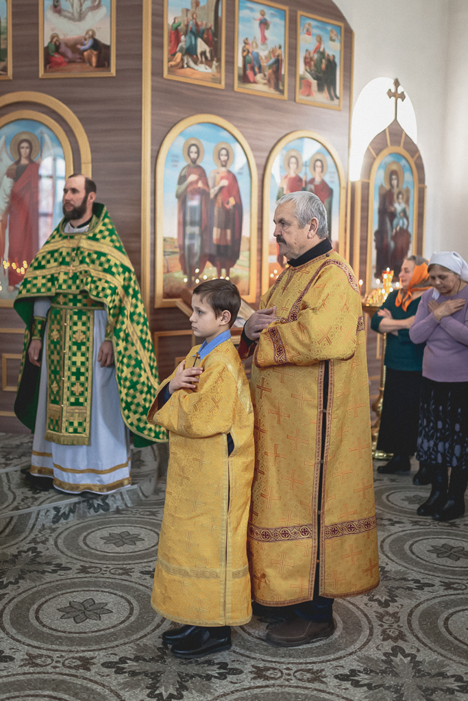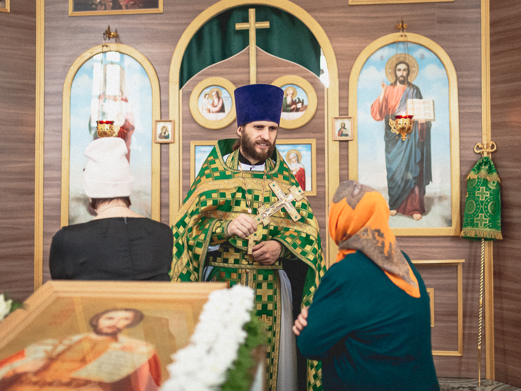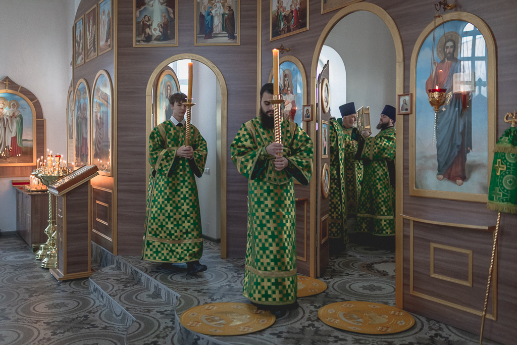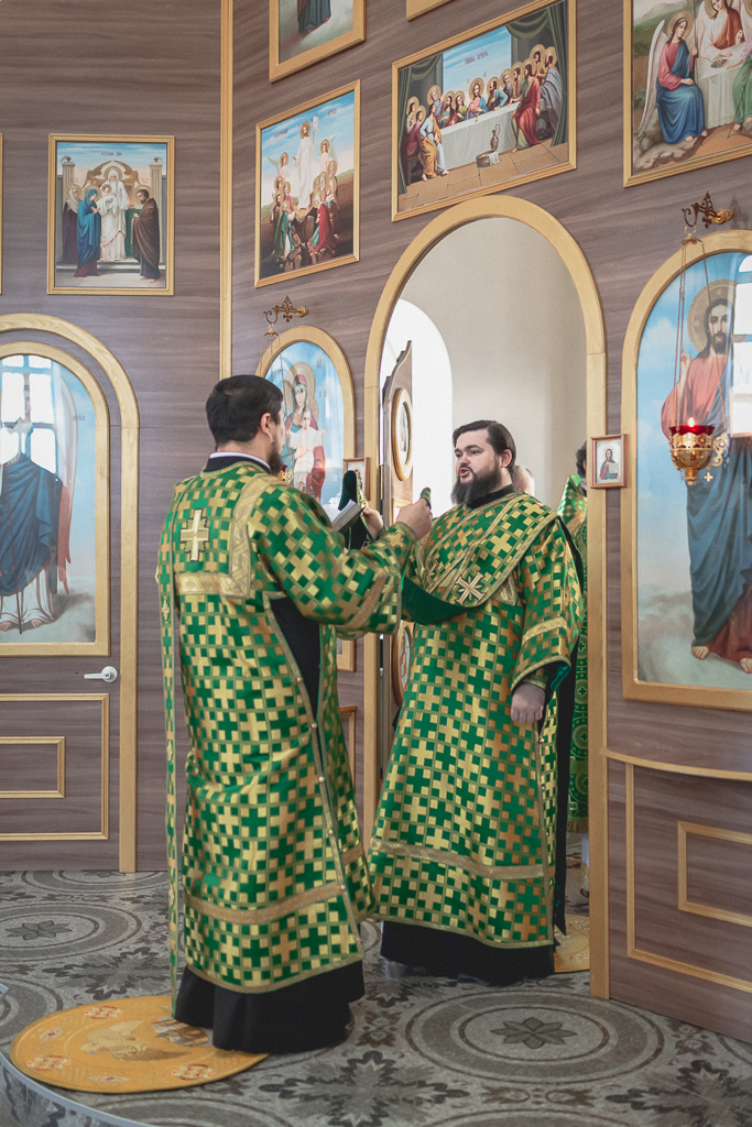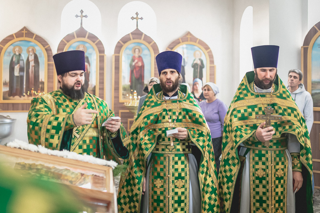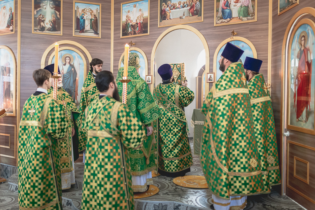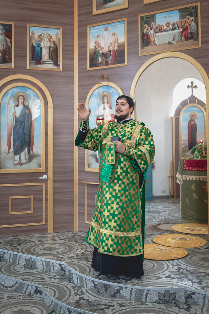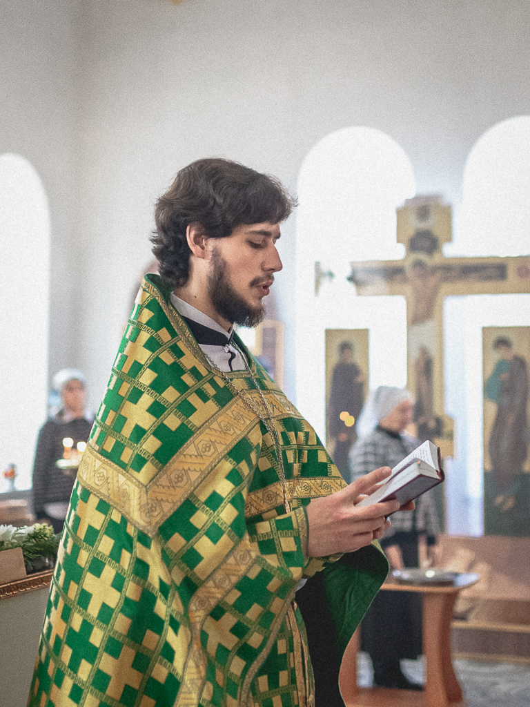 За Божественной литургией архипастырю сослужили настоятель храма иерей Георгий Болоцков, настоятель Киреевского Георгиевского архиерейского подворья протоиерей Георгий Болоцков, настоятель храма праведного Иосифа Обручника г. Шахты иерей Сергий Болоцков, иерей Михаил Дубянский, диакон Трофим Осяк и диакон Антоний Гулиев.