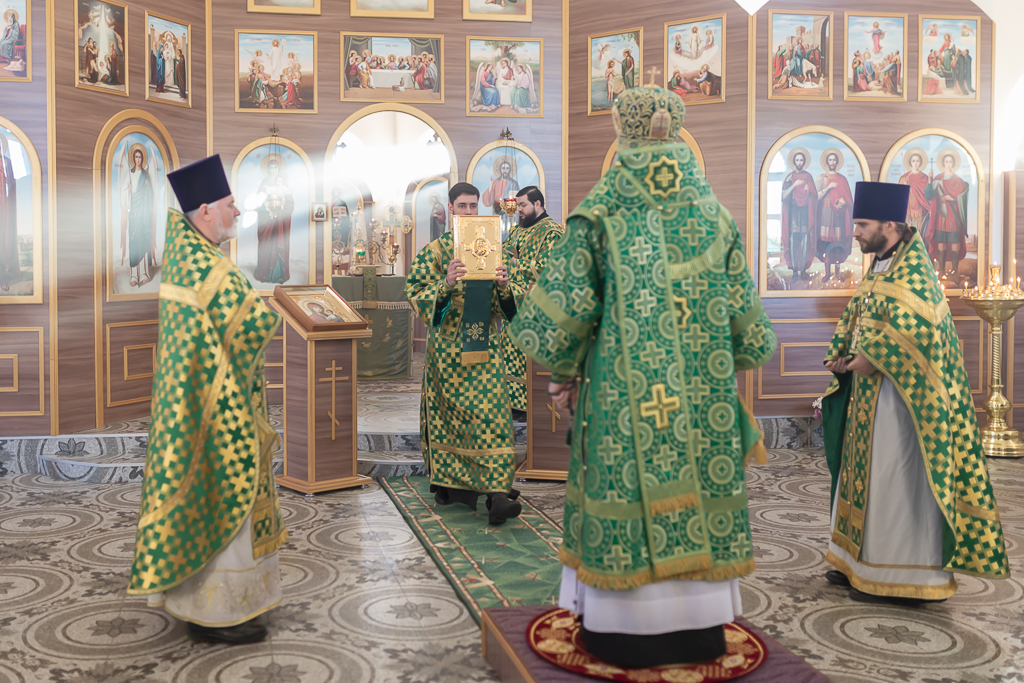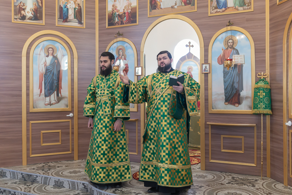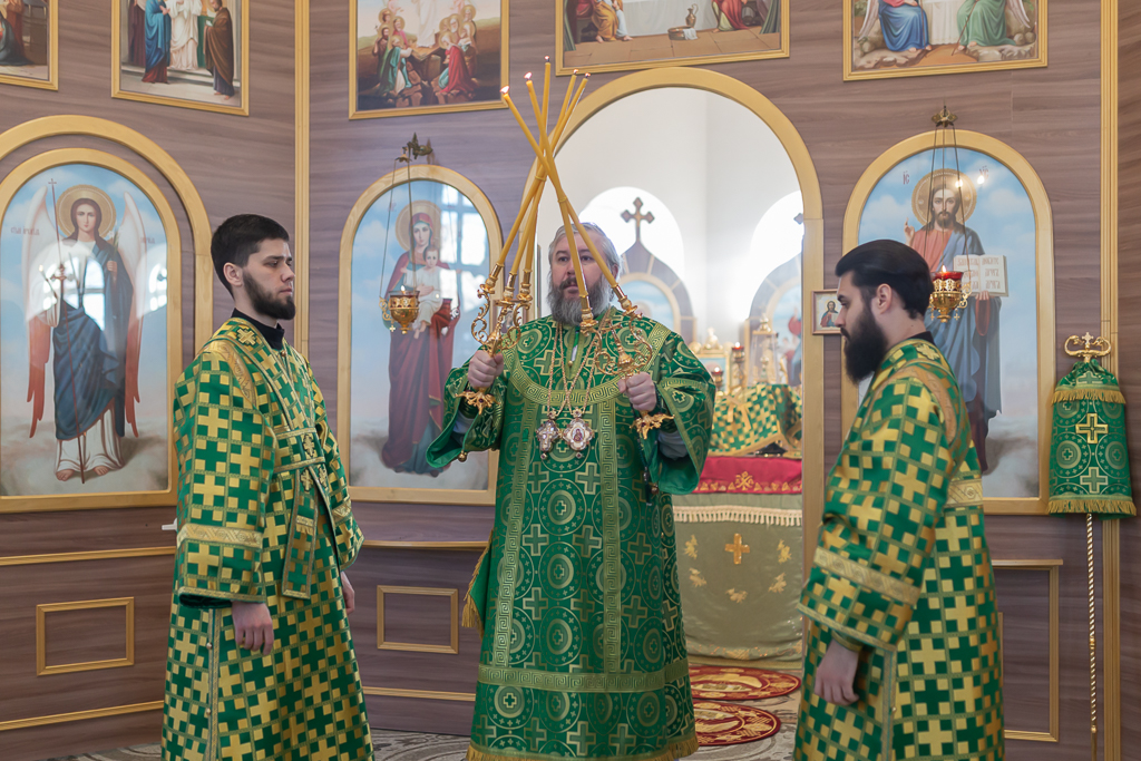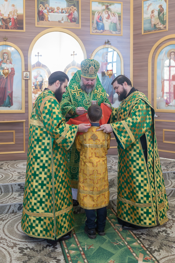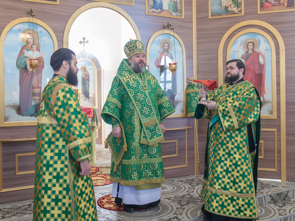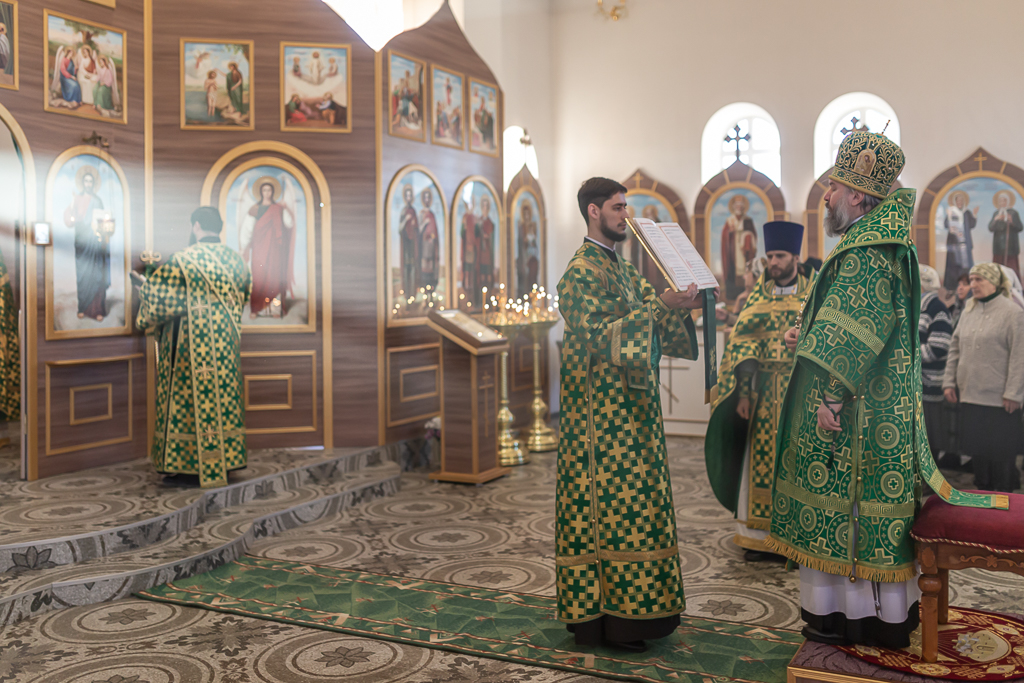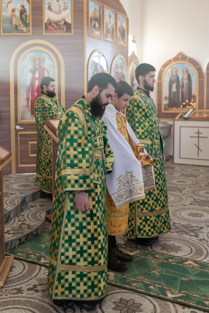 За Божественной литургией архипастырю сослужили настоятель храма иерей Георгий Болоцков, настоятель Киреевского Георгиевского архиерейского подворья протоиерей Георгий Болоцков, настоятель храма праведного Иосифа Обручника г. Шахты иерей Сергий Болоцков и диакон Трофим Осяк.