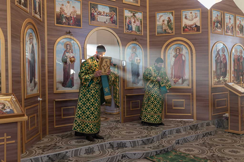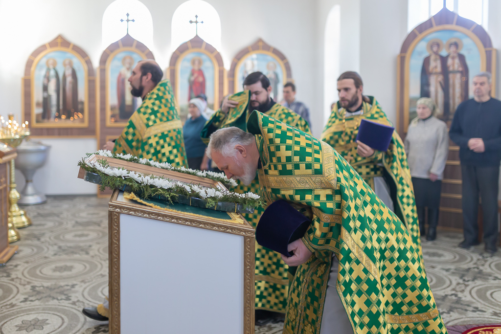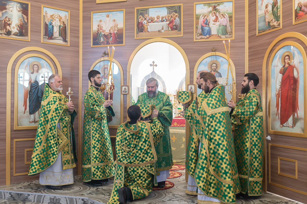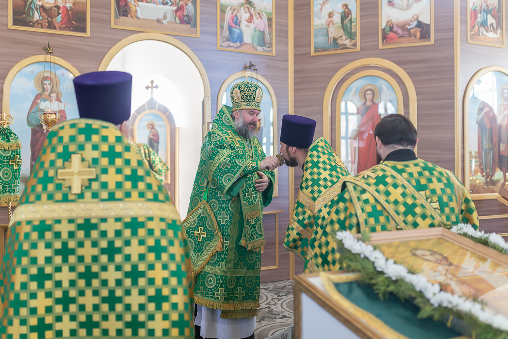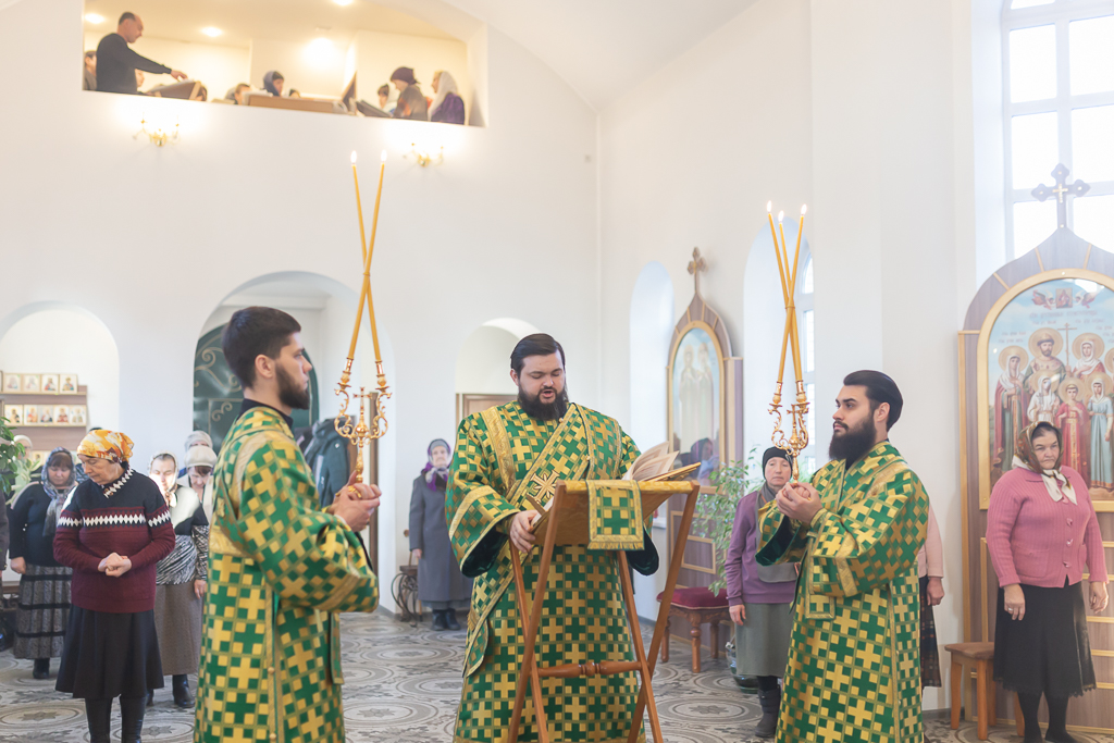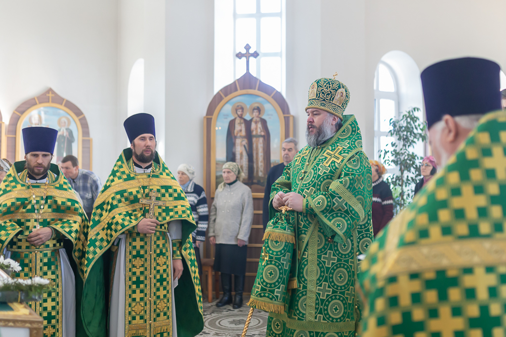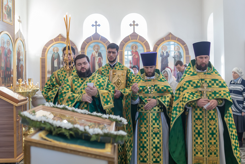 За Божественной литургией архипастырю сослужили настоятель храма иерей Георгий Болоцков, настоятель Киреевского Георгиевского архиерейского подворья протоиерей Георгий Болоцков, настоятель храма праведного Иосифа Обручника г. Шахты иерей Сергий Болоцков и диакон Трофим Осяк.