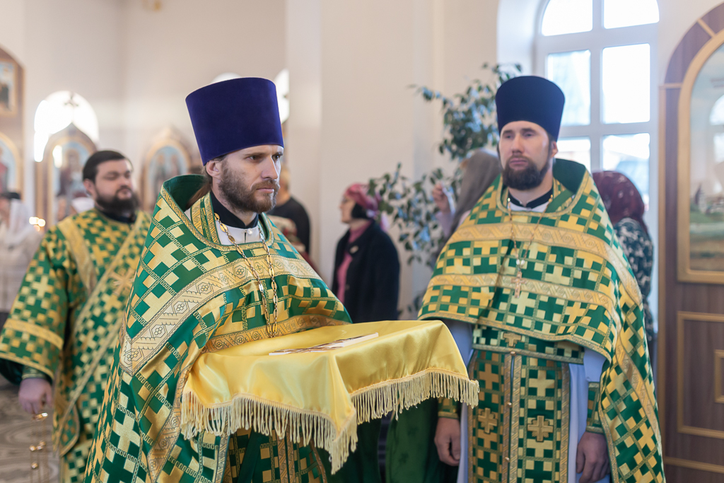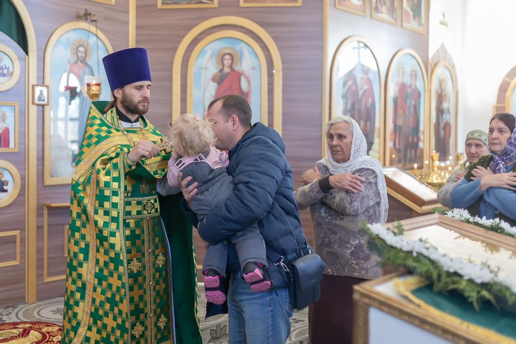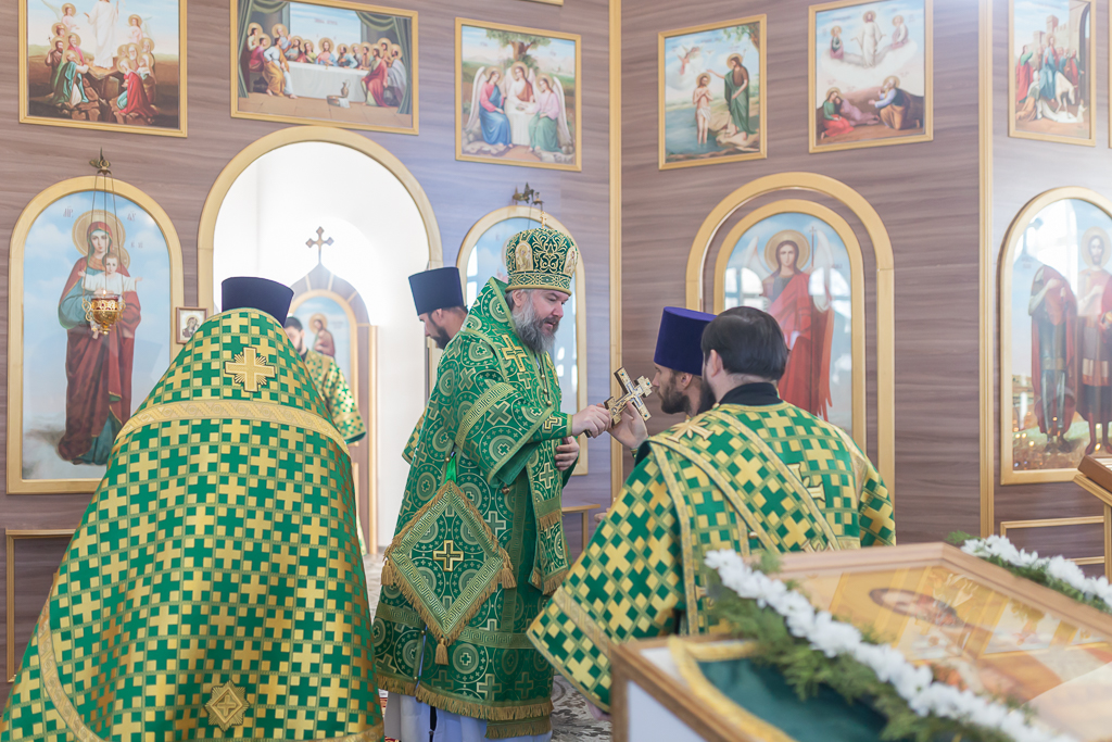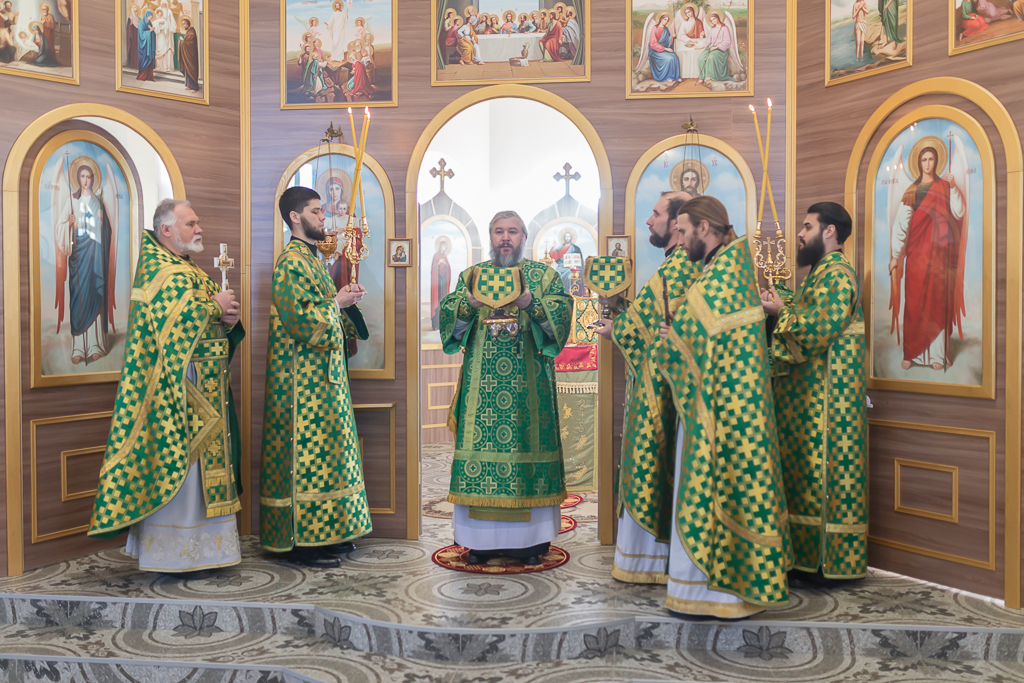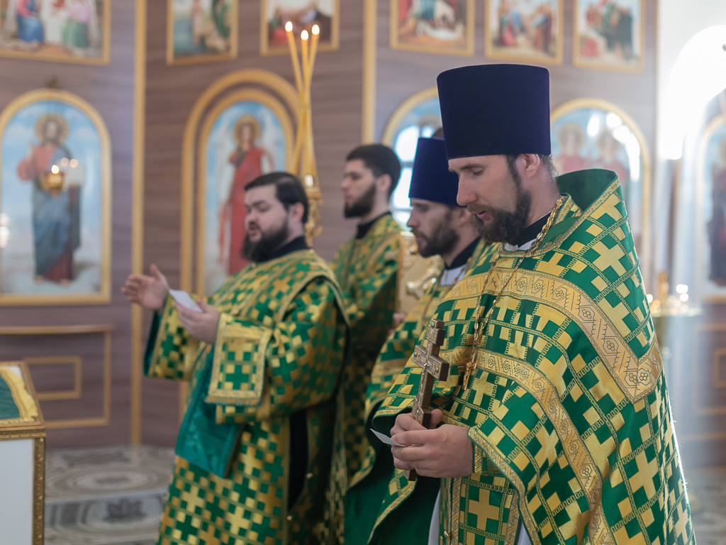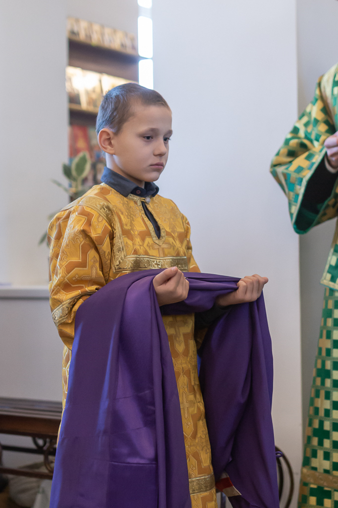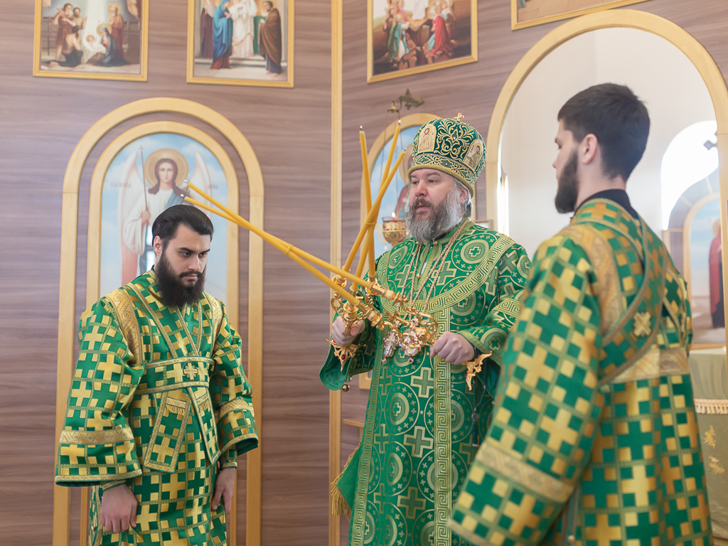 За Божественной литургией архипастырю сослужили настоятель храма иерей Георгий Болоцков, настоятель Киреевского Георгиевского архиерейского подворья протоиерей Георгий Болоцков, настоятель храма праведного Иосифа Обручника г. Шахты иерей Сергий Болоцков и диакон Трофим Осяк.