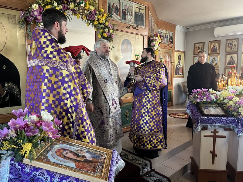 8 марта 2026 года в престольный праздник епископ Шахтинский и Миллеровский Симон совершил Божественную литургию в храме святой блаженной Матроны Московской города Донецка.