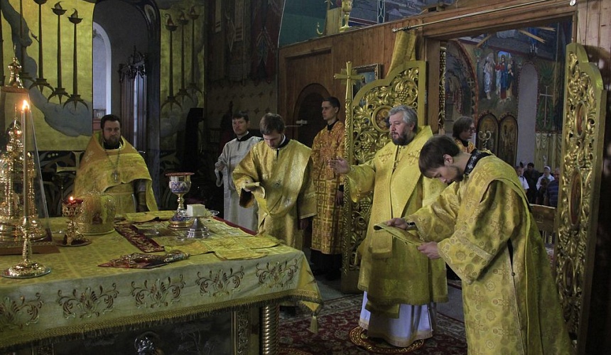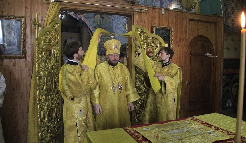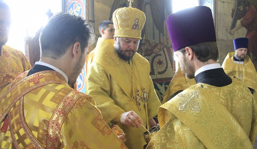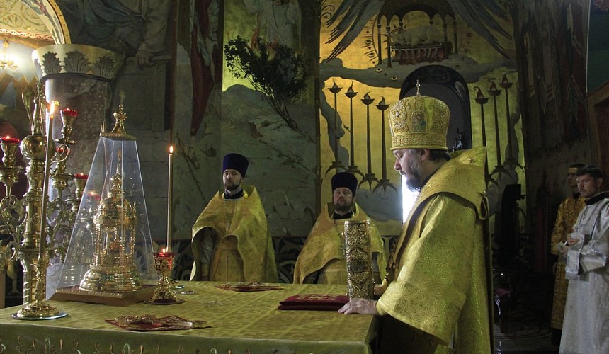 Его Преосвященству сослужили настоятель собора иерей Симеон Есин, духовенство собора: иерей Леонид Зацепилин, протодиакон Константин Лобов, иеродиакон Флавиан (Васильев), диакон Алексей Ряшкин.