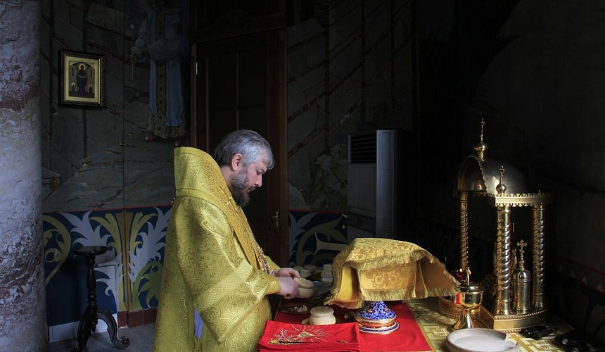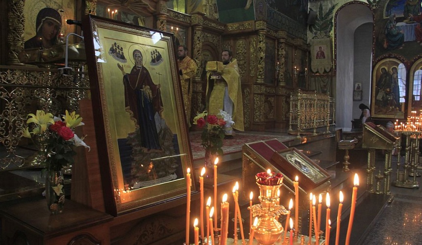 За богослужением архиерей вознес молитву о мире на Украине.