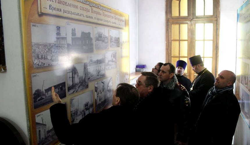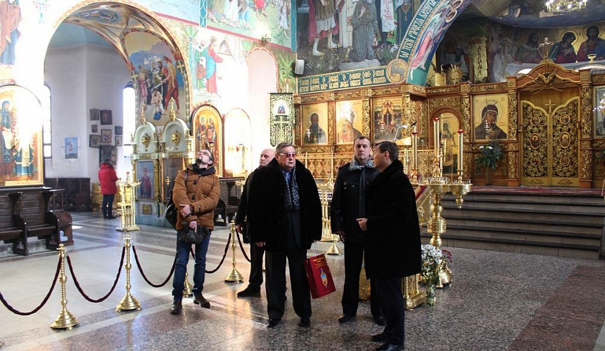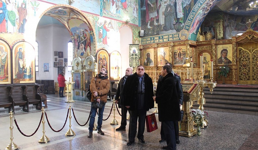 По благословению правящего архиерея пресс-секретарь епархии И.Г. Шарков провёл для высоких гостей экскурсию по территории епархиального подворья и в Покровский кафедральный собор, рассказав о созидаемом парке библейских растений, истории соборного храма, архитектурных особенностях и оформлении соборного интерьера. Особенный интерес гостей вызвал рассказ о церковной символике и о концепции фресковой живописи Покровского собора.
