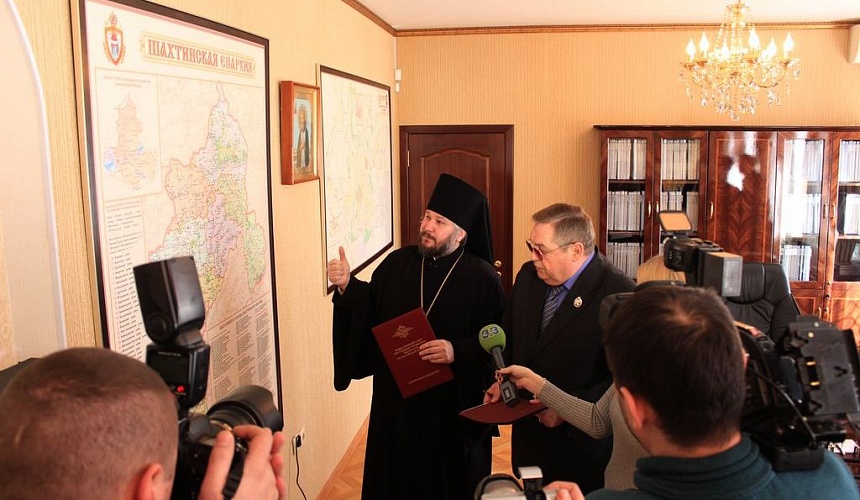 9 февраля в Шахтинском епархиальном управлении было пописано соглашение о сотрудничестве Шахтинской епархии РПЦ (МП) и Общественного совета при Главном Управлении МВД России по Ростовской области. Подписи под документом в торжественной обстановке поставили Управляющий Шахтинской епархией Преосвященнейший Симон, епископ Шахтинский и Миллеровский и председатель Общественного совета при ГУ МВД России по Ростовской области, помощник депутата Государственной Думы РФ, заслуженный юрист РФ Эдуард Модестович Шапошников.