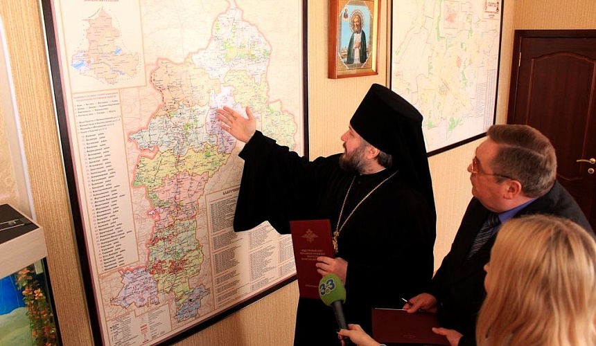 Преосвященнейший епископ Симон сердечно поблагодарил Эдуарда Модестовича за доброе соработничество и укрепление взаимодействия и вручил гостю юбилейное памятное издание «Шахтинская епархия: пять лет служения». Владыка дал интервью областным и городским СМИ, рассказав о социально значимом сотрудничестве отделов и представителей епархии с учреждениями охраны правопорядка на территории региона.