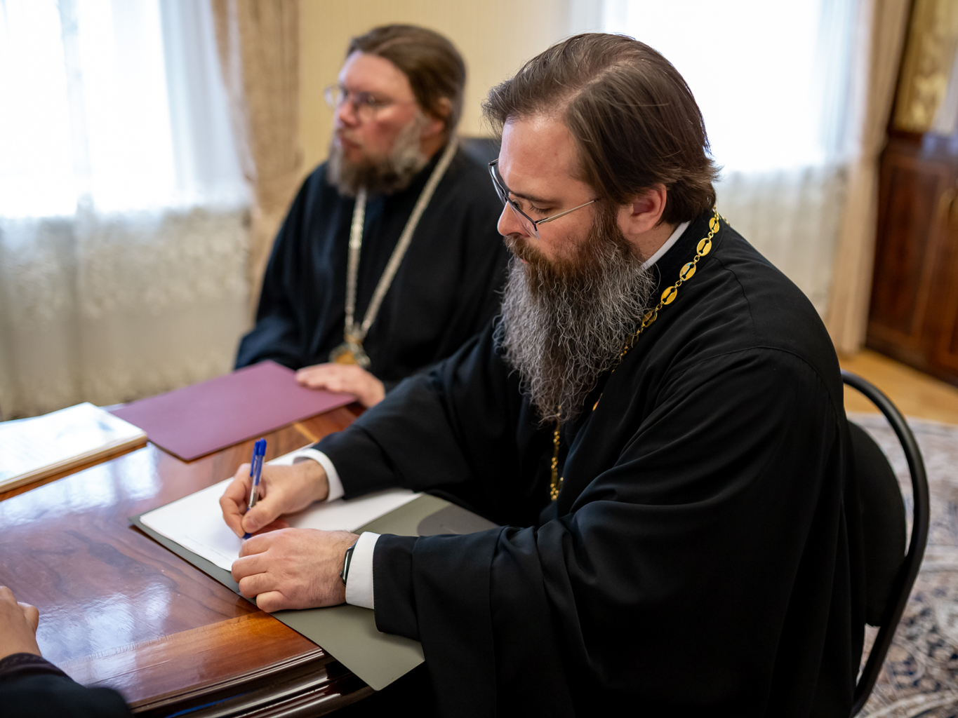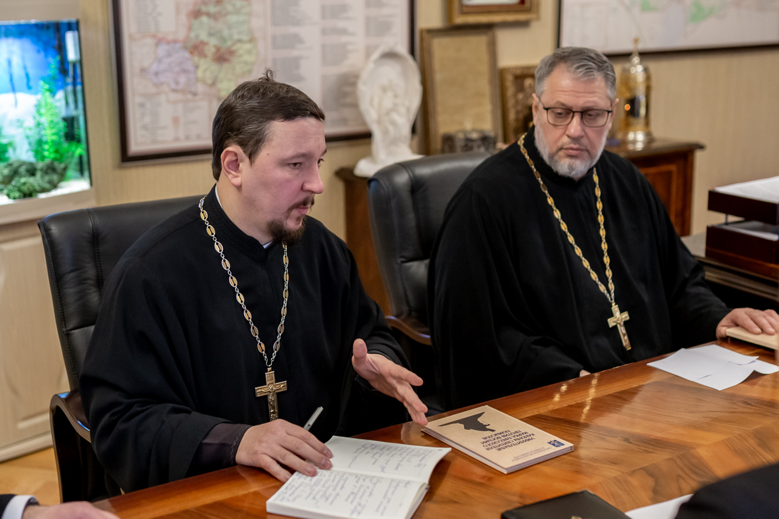 5 марта 2026 года Преосвященнейший епископ Симон в своём рабочем кабинете в Шахтинском епархиальном управлении провел совещание по вопросам организации и проведения Четвертых епархиальных Палестинских чтений с международным участием в станице Вешенской Ростовской области.