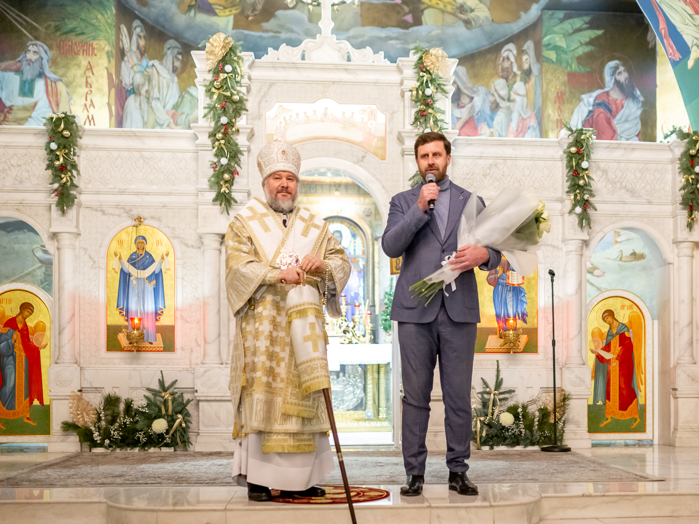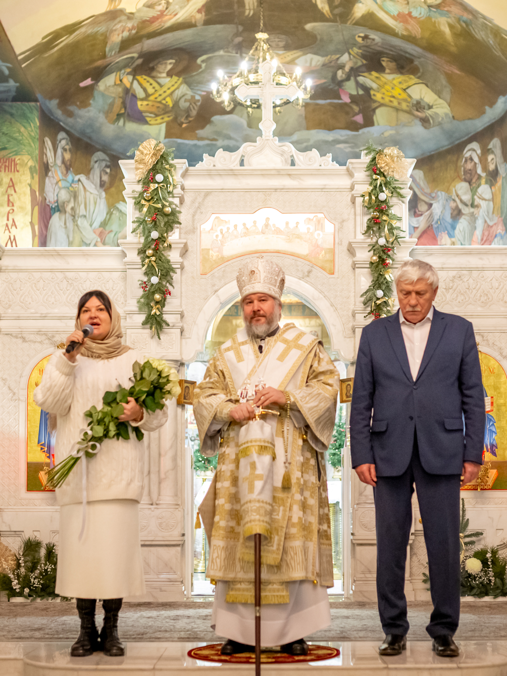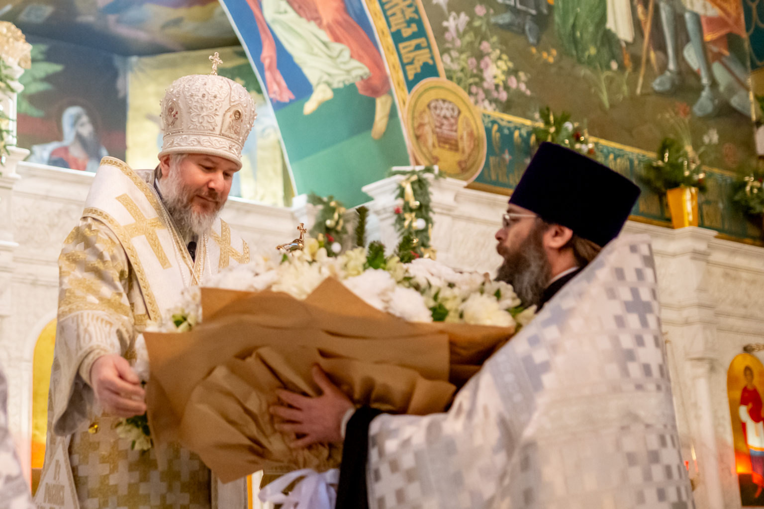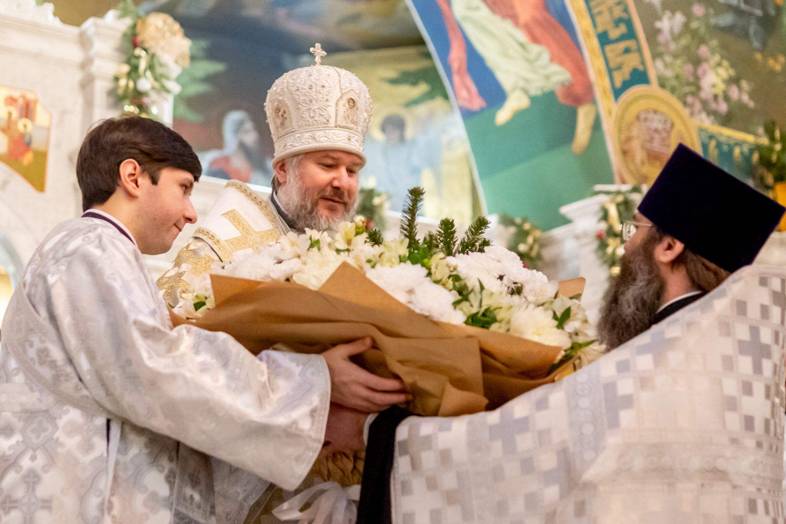 Преосвященнейший епископ Симон в ответ поблагодарил за поздравления и обратился к собравшимся со словами архипастырского назидания. В своем обращении владыка напомнил, что первыми радостную весть о рождении Спасителя услышали простые пастухи, чьи сердца не были обременены суетой.