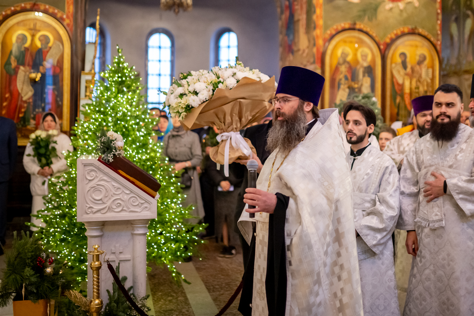 По окончании богослужения от лица духовенства епархии епископа Симона с праздником Рождества Христова поздравил секретарь Шахтинской Епархии иерей Александр Теличкин.