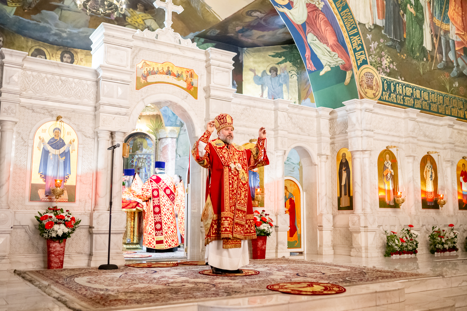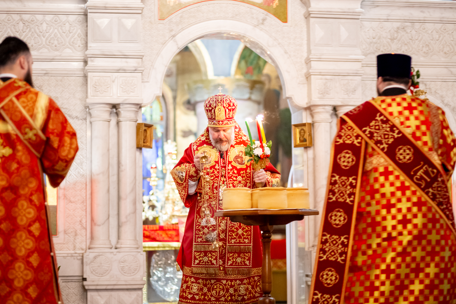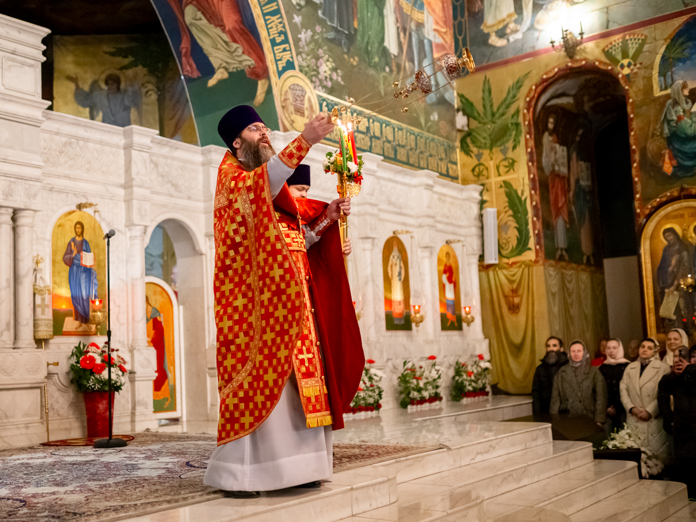 Епископ Симон преподал собравшимся на молитву архипастырское благословение и тепло поздравил с «праздником праздников и торжеством из торжеств».