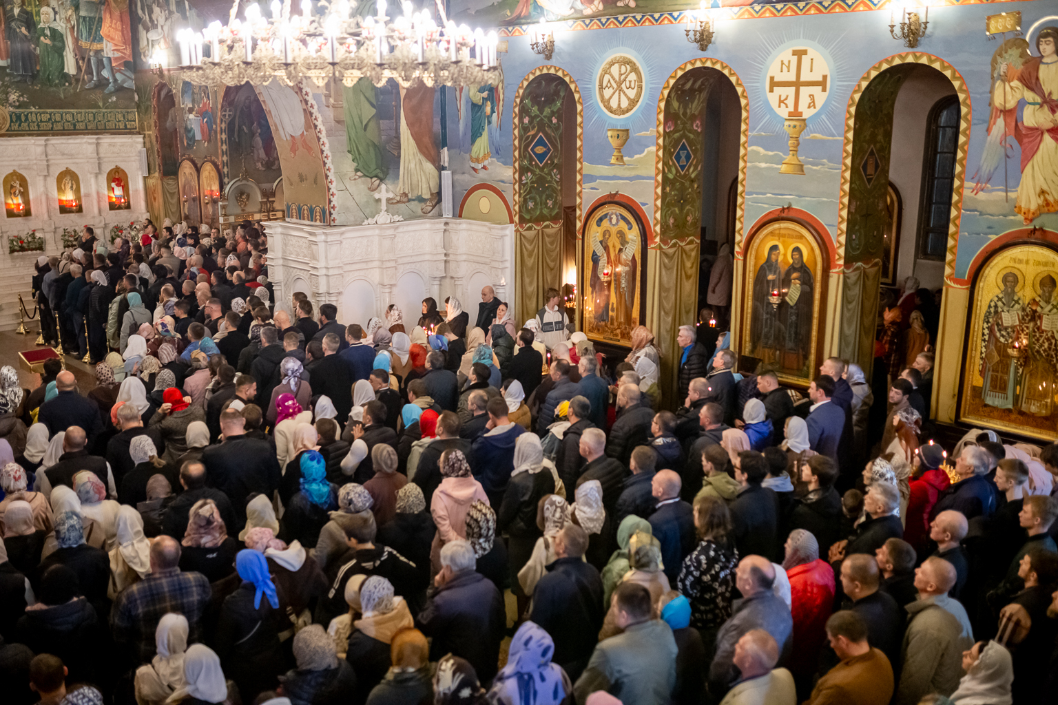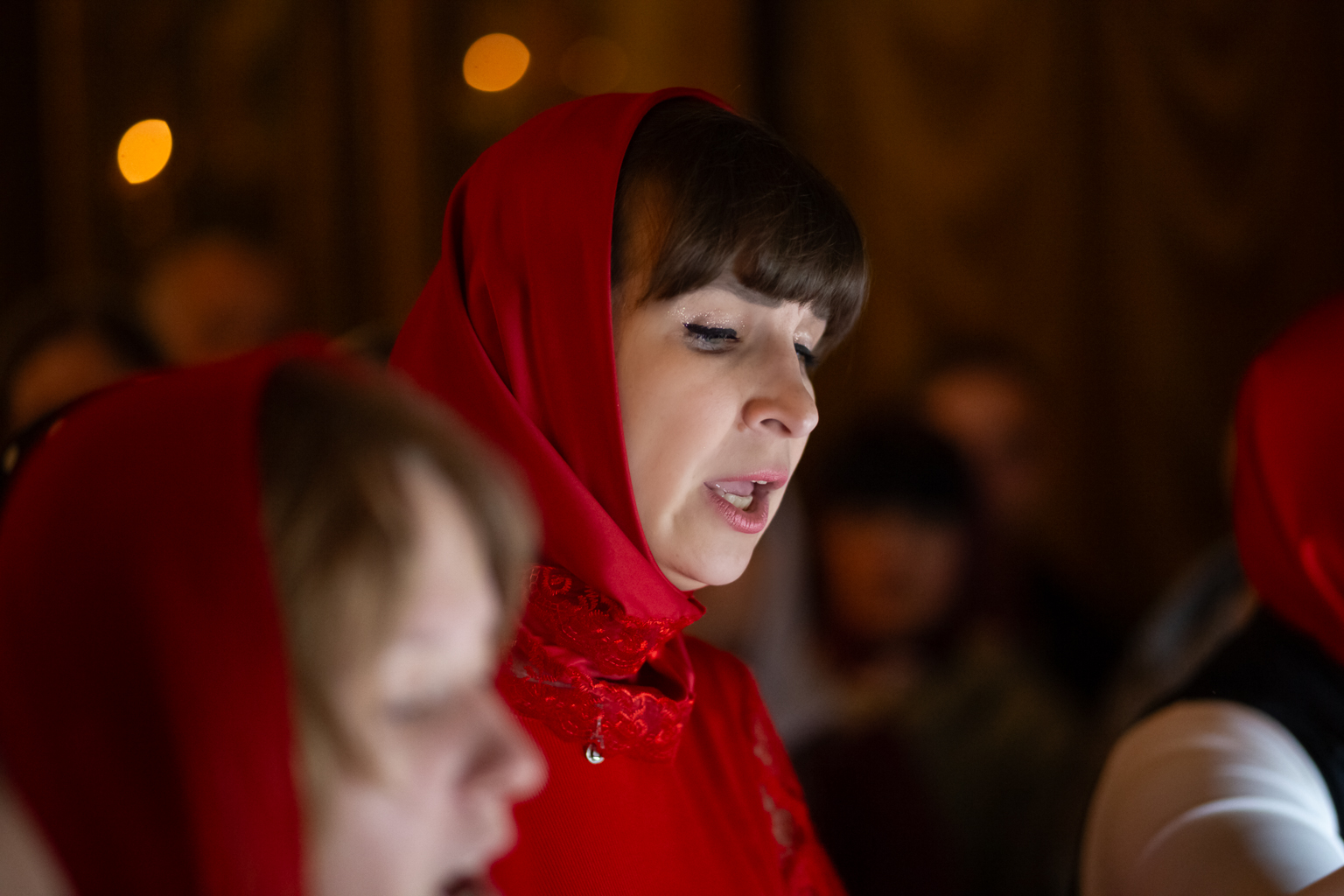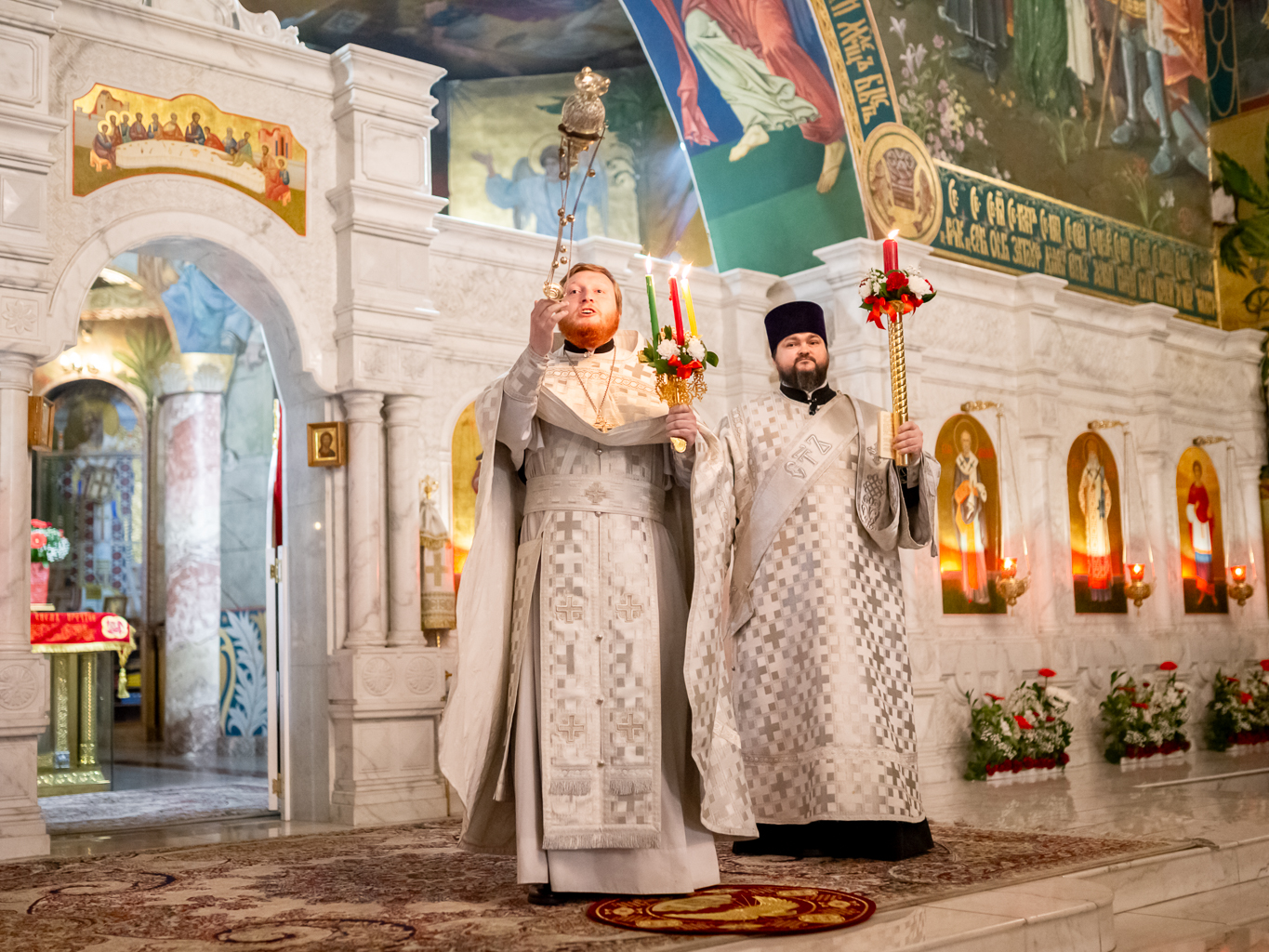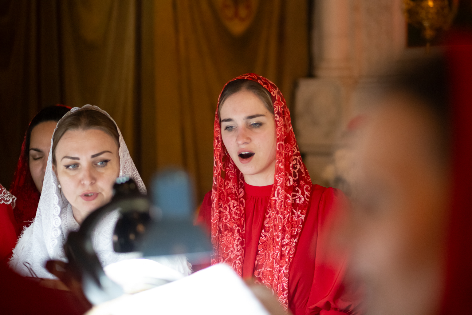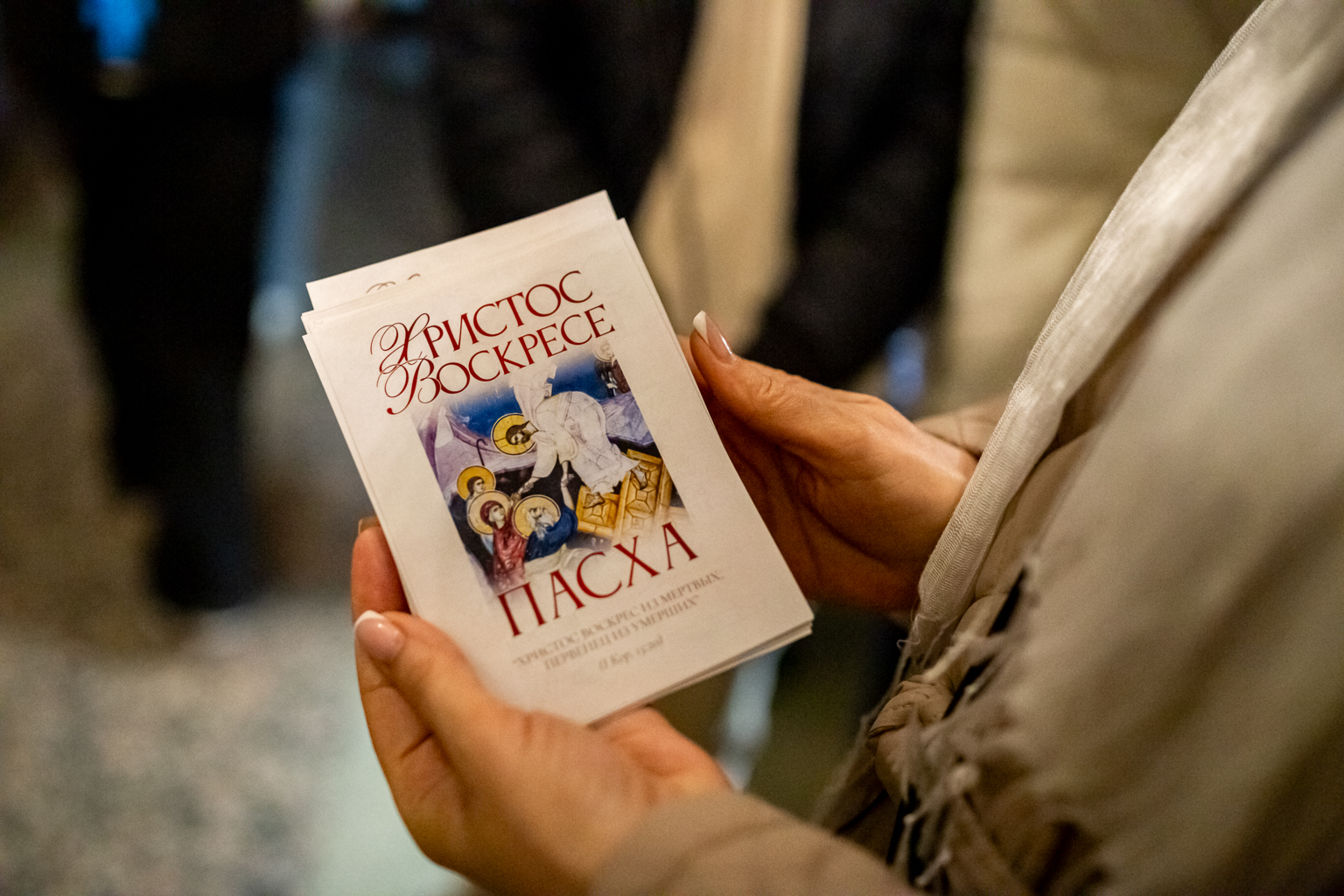 На литургии читается Евангелие на разных языках, это означает, что всем народам на земле возвещается благая весть о Воскресшем Господе.