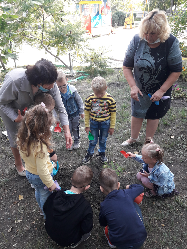 Завершилось занятие участием детей и воспитателей в добром деле, посадке дерева на территории детского сада.