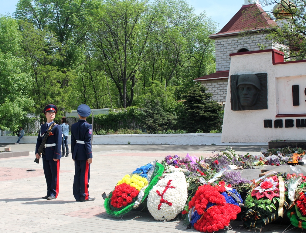 Казаки и прихожане возложили венки и цветы к Вечному огню и мемориальным доскам.