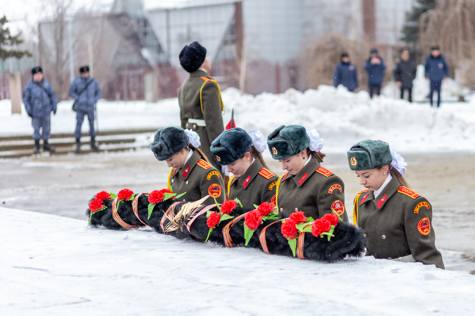 В памятную для нашего города дату прошли торжественные мероприятия с возложением цветов к Мемориальному комплексу «Жертвам фашизма», «Площадь 40-летия Победы» и к Братской могиле в Александровском Парке Культуры и Отдыха, в которых приняли участие глава города Шахты Людмила Овчиева, депутат Законодательного Собрания Ростовской области Аркадий Горцевской, председатель городской Думы Максим Голодов, председатель Общественной палаты г.Шахты Александр Скориков, руководитель Контрольно-счетной палаты Галина Аверкина, благочинный Александровск-Грушевского округа, настоятель Покровского кафедрального собора иерей Александр Теличкин, председатель Совета ветеранов Александр Пятаков, депутаты, представители общественных организаций.