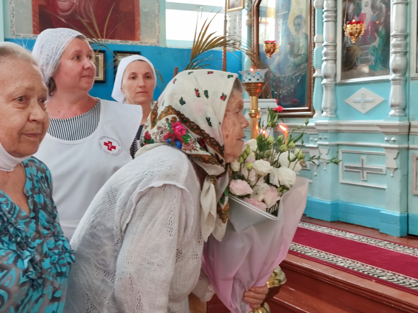 После очередного праздничного богослужения, в храме поздравили с юбилеем прихожанку, годы детства которой пришлись на суровые годы войны и труженицу тыла.