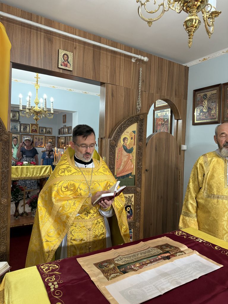 В этот день настоятель совершил свою первую Божественную литургию на приходе. Во время богослужения многие прихожане причастились Святых Христовых Таин. Приветствовать нового настоятеля пришли представитель Администрации Каргинского сельского поселения и местные казаки.