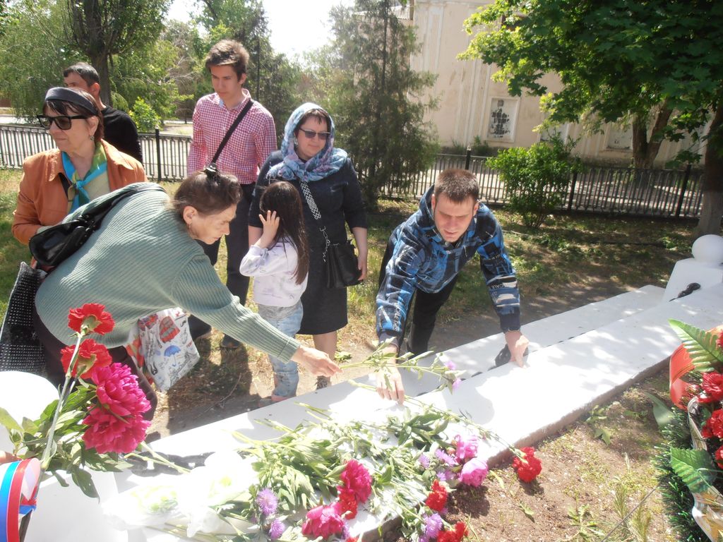 После урока, с гордостью за свою Родину и благодарность тем, кто отстоял мир на земле, все вместе, во главе с настоятелем храма протоиереем Вячеславом Лавлинским, под песню «Пусть всегда будет солнце! Пусть всегда будет мир!» отправились к мемориалу истории, где глубже смогли понять и почувствовать радость Победы, гордость за наших героических предков, за весь русский народ и историю нашей страны.