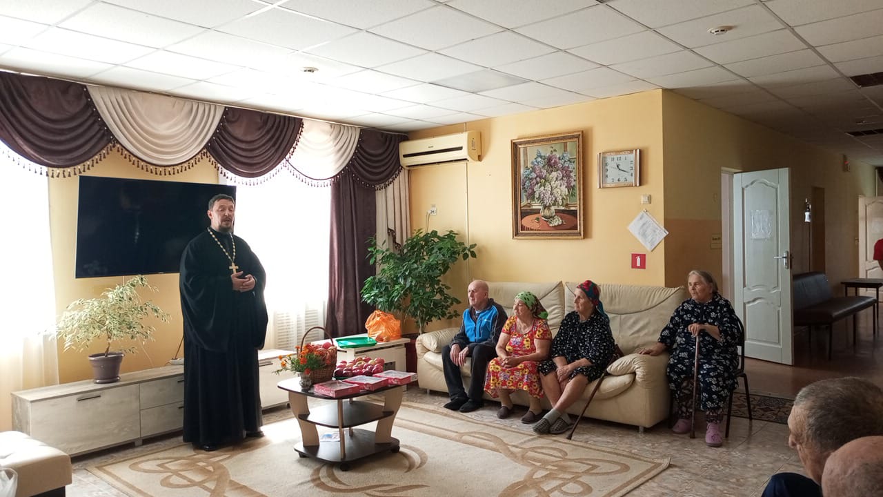 В день Преображения Господня принято совершать добрые дела. После Божественной литургии в храме Архистратига Михаила и освящения плодов нового урожая благочинный Верхнедонского округа иерей Роман Митяшин поспешил поздравить с Преображением Господним бабушек и дедушек дома престарелых хутора Колундаевского, которые всегда с нетерпением ждут приезда священнослужителя.