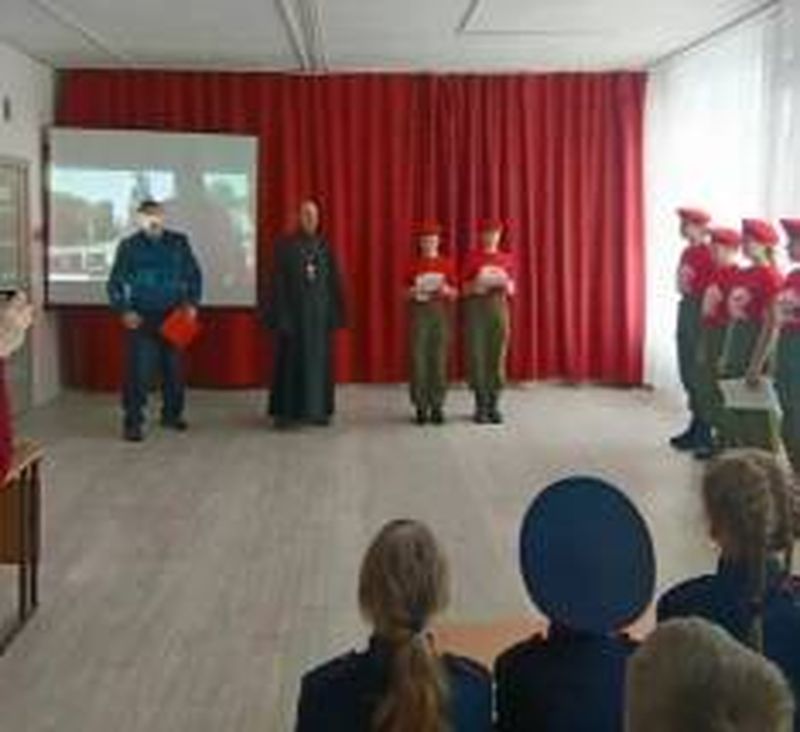 На занятии присутствовали почётные гости: настоятель храма апостола Иоанна Богослова иерей Андрей Перьков и казак-наставник С.А. Симонов.
