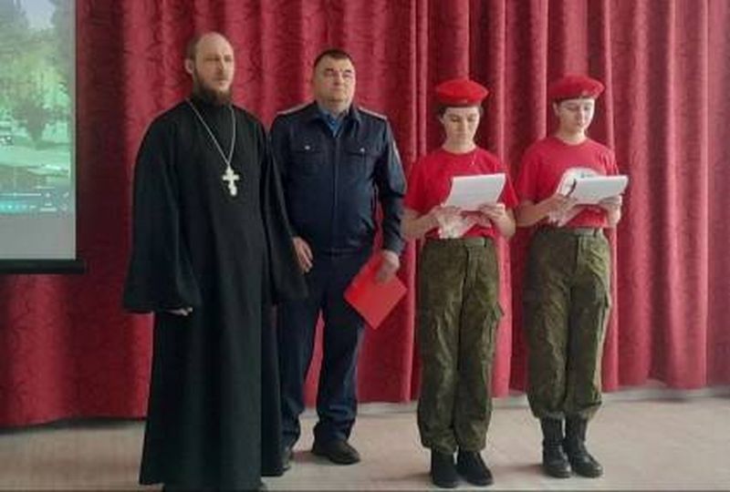 Казак-наставник рассказал о возрождении казачества в наши дни и призвал детей изучать историю России и Дона, народные традиции и хранить православную веру.