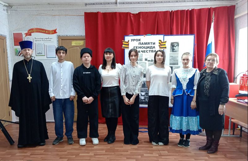 В основной школе хутора Усьмана Багаевского района прошёл «Урок Памяти геноцида казачества» для учащихся 7-9 классов. На занятии присутствовали настоятель Прихода святого великомученика Георгия Победоносца х. Усьмана протоиерей Роман Мясников и помощник настоятеля по образованию Е.Б. Бурим.