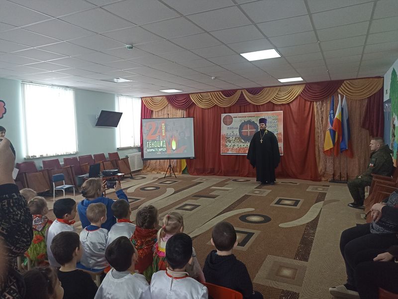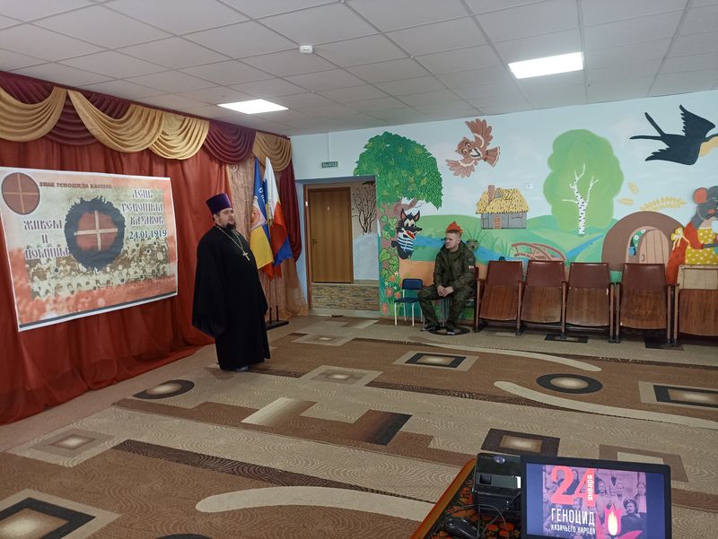 Казачий духовник настоятель храма Архистратига Михаила хутора Ёлкин иерей Анатолий Минаев принял участие в памятном мероприятии посвященном Дню геноцида казачества в детском саду "Солнышко" хутора Ёлкин.