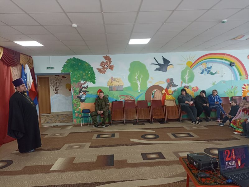 В МБДОУ "Солнышко" хутора Ёлкин прошла беседа со священником на тему: "День геноцида казаков"