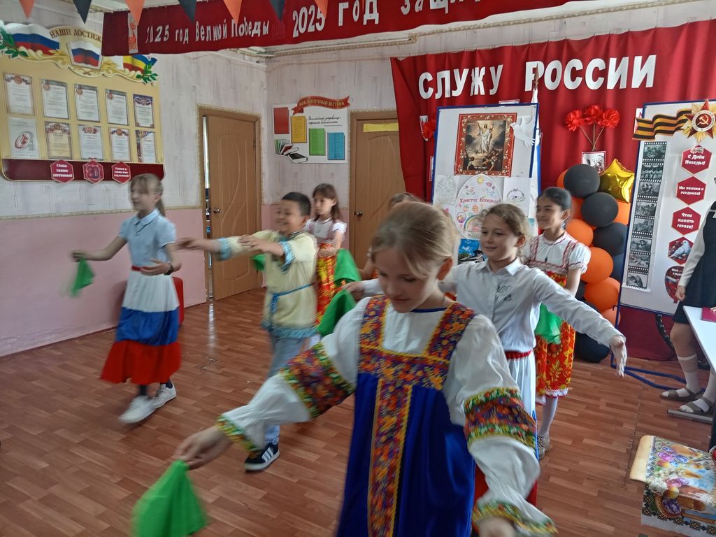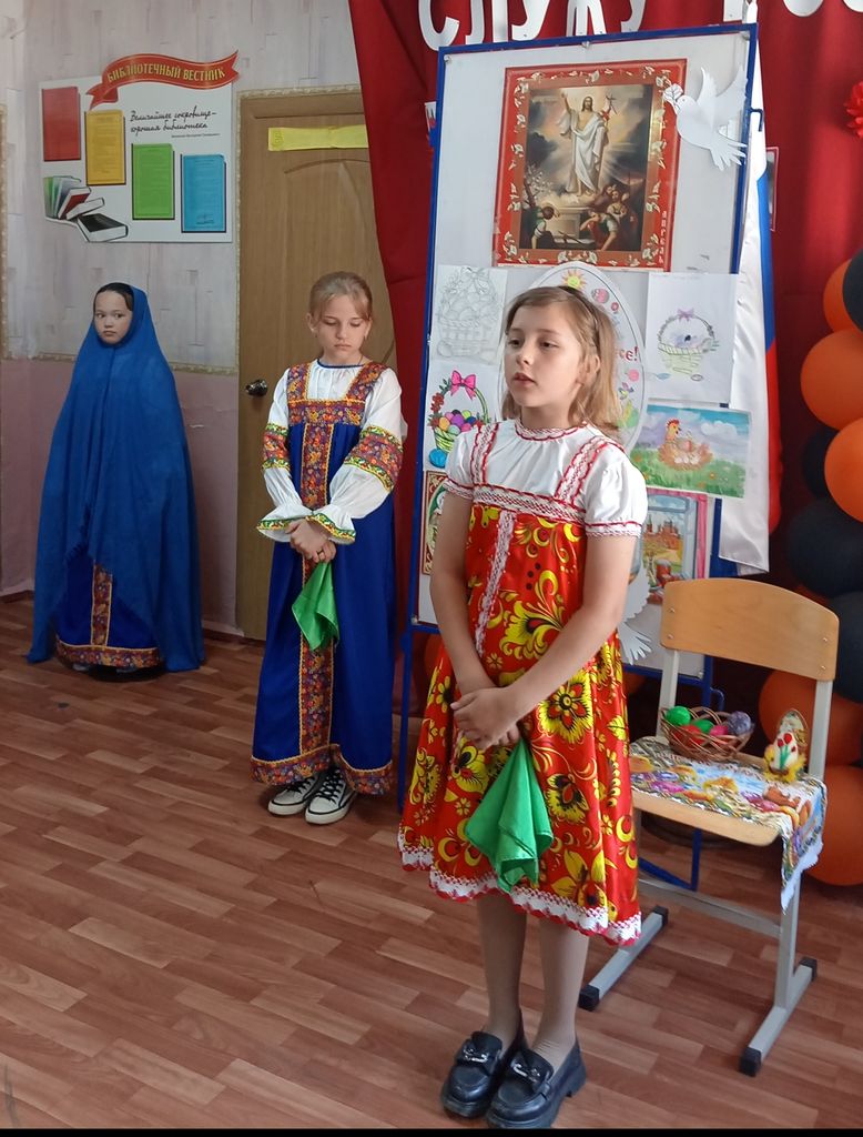 Группа учащихся исполнила пасхальный тропарь и прочла стихи известных поэтов о празднике Пасхи. Завершилось выступление народным танцем.