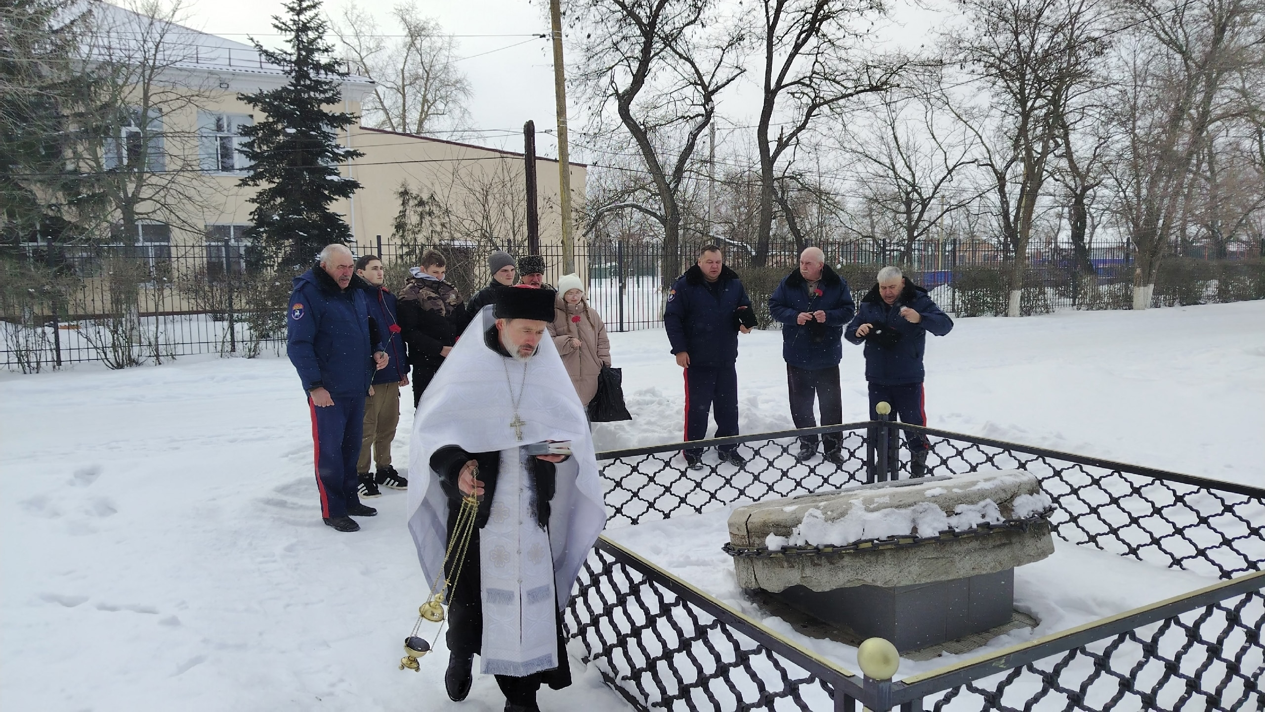 У памятного знака "Единство казачьего народа" в станице Каргинской настоятель станичного храма Покрова Пресвятой Богородицы иерей Борис Юров совершил заупокойную литию. По окончании молитвы казаки станицы совместно с КДМО "Донцы" возложили цветы к памятному камню.