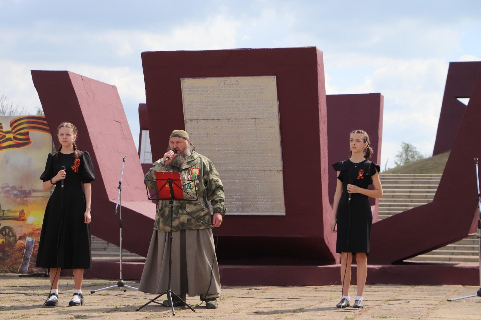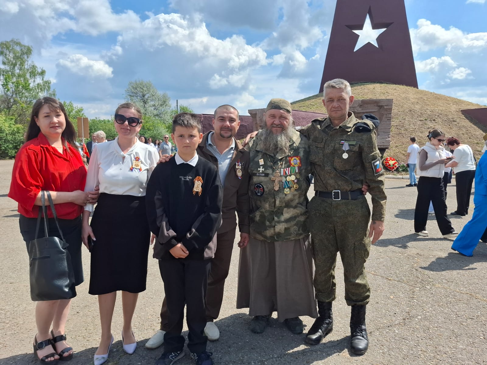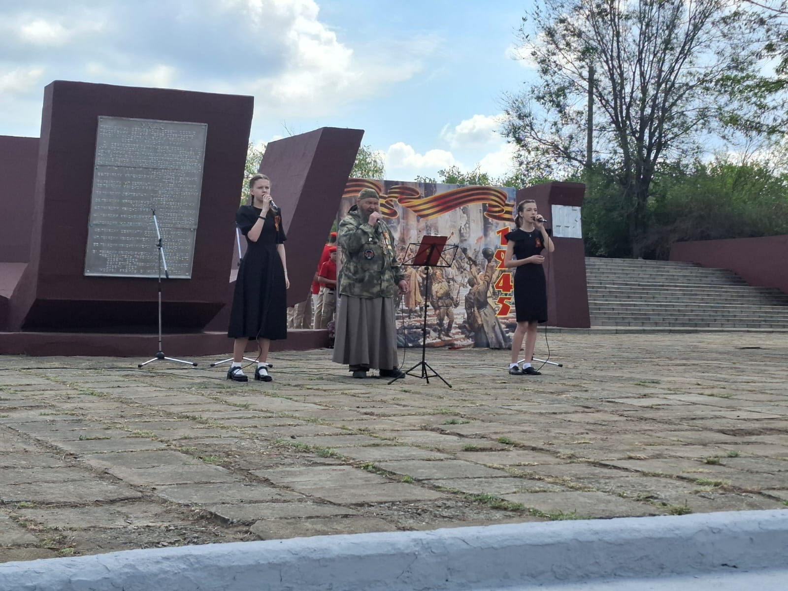 Настоятель храма Святителя Тихона Задонского п. Тарасовский протоиерей Игорь Колистратов поздравил жителей поселка с 80-ой годовщиной Великой победы.